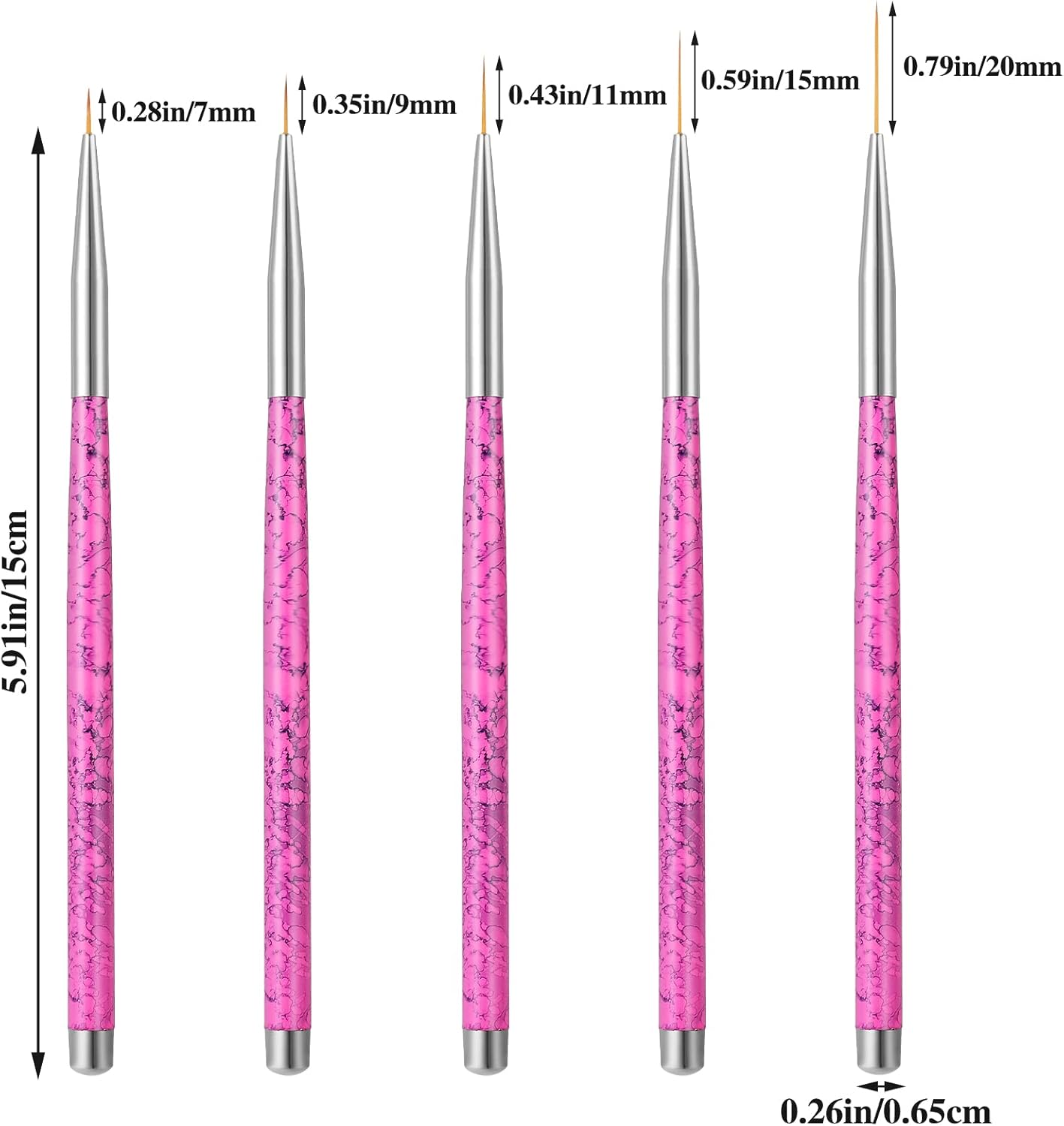 Functie: nagelverf, comfortabele grip, duurzaam, multi-size borstellengte: 0,28 inch / 7 mm, 0,35 inch/9 mm, 0,43 inch / 11 mm, 0,59 inch / 15 mm, 0,79 inch / 20 mm