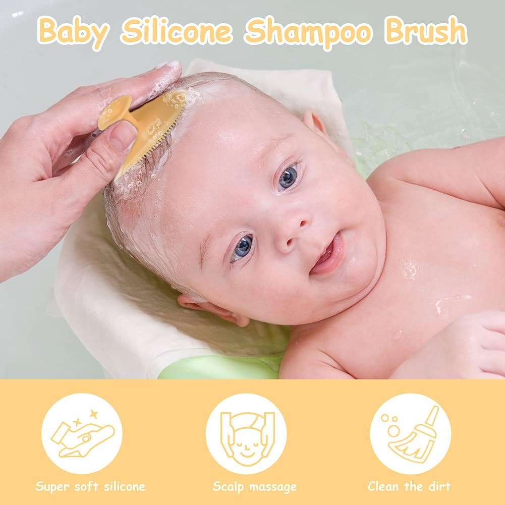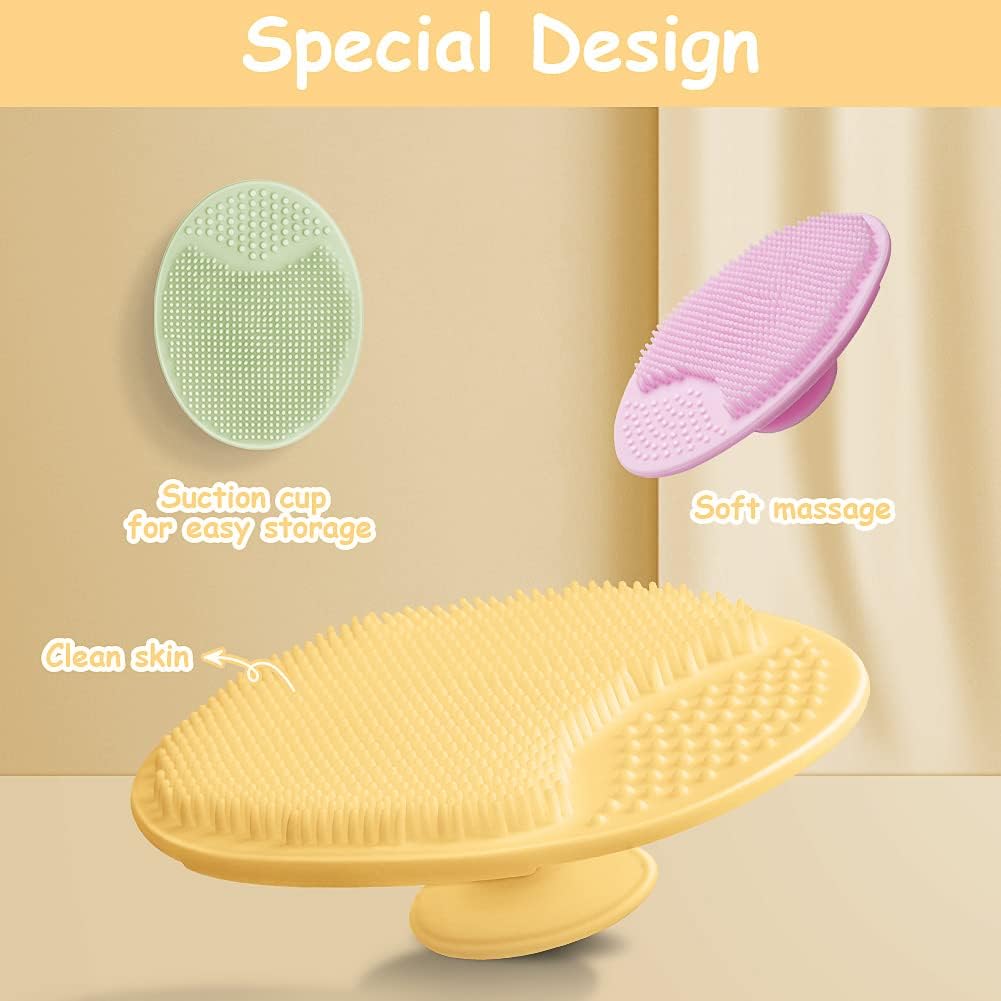 Siliconen babybadborstel, 3 stuks babyhoofdhuid-massageborstel, siliconen gezichtscrubber, scrubborstel, handmatige gezichtsreinigingsborstel voor pasgeborenen en peuters