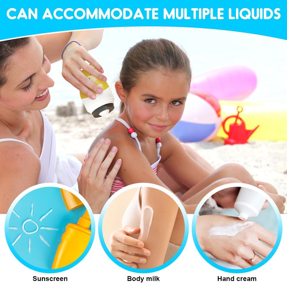 Compact en reisvriendelijk, passen onze zonnecrème-applicator voor kinderen in flesjes van 100 ml en voldoen aan de vloeistofbeperkingen van de luchtvaartmaatschappijen.