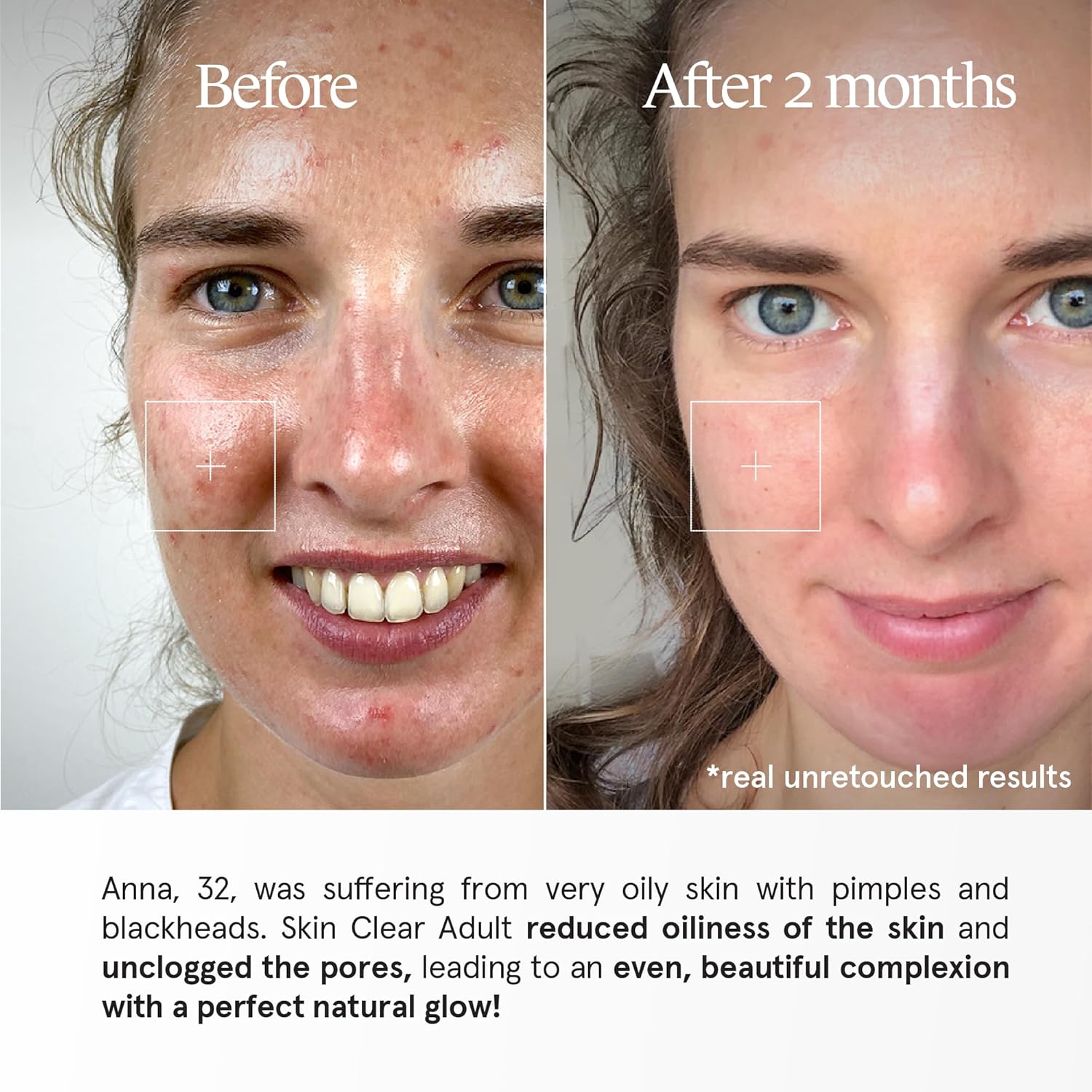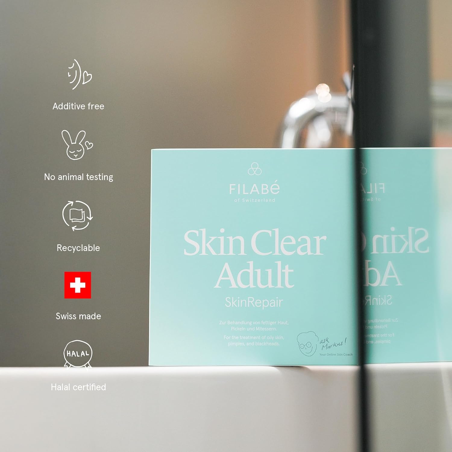 Skin Clear Adult – Voor de verzorging van een vette huid met puistjes en mee-eters vanaf 22 jaar. Verpakking voor 28 dagen. Veganistisch en zonder additieven – Swiss made by Filabé of Switzerland