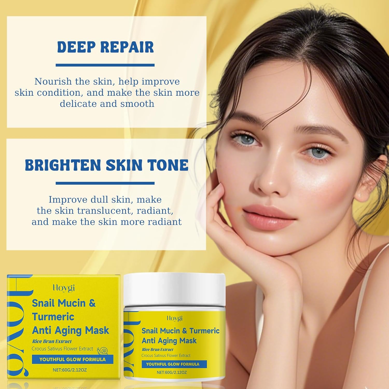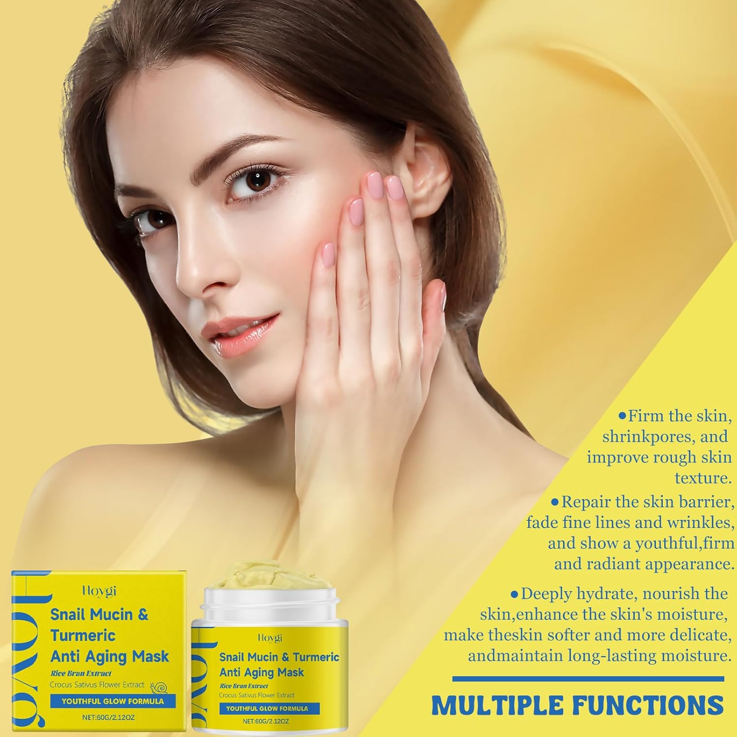 Snail Mucin & Turmeric anti-aging masker, slakkenslijmmasker, collageenmasker voor een diepe vocht- en stralende teint, vermindert rimpels en verbetert de huidelasticiteit, voor alle huidtypes
