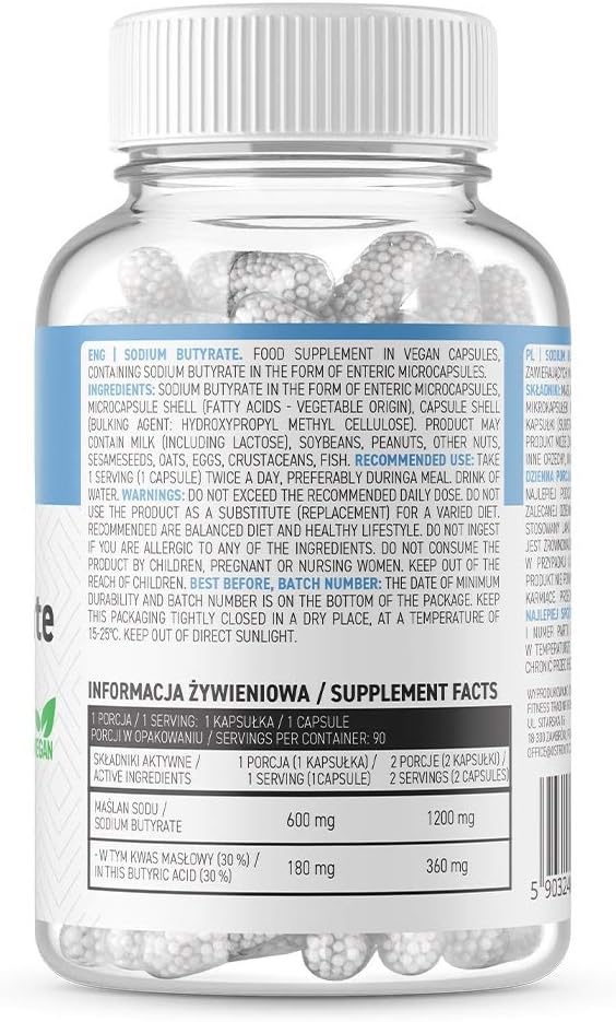 Overzicht van het product: Sodium Butyrate – Natriumbutyraat – Vegan – 90 Capsules Ostrovit