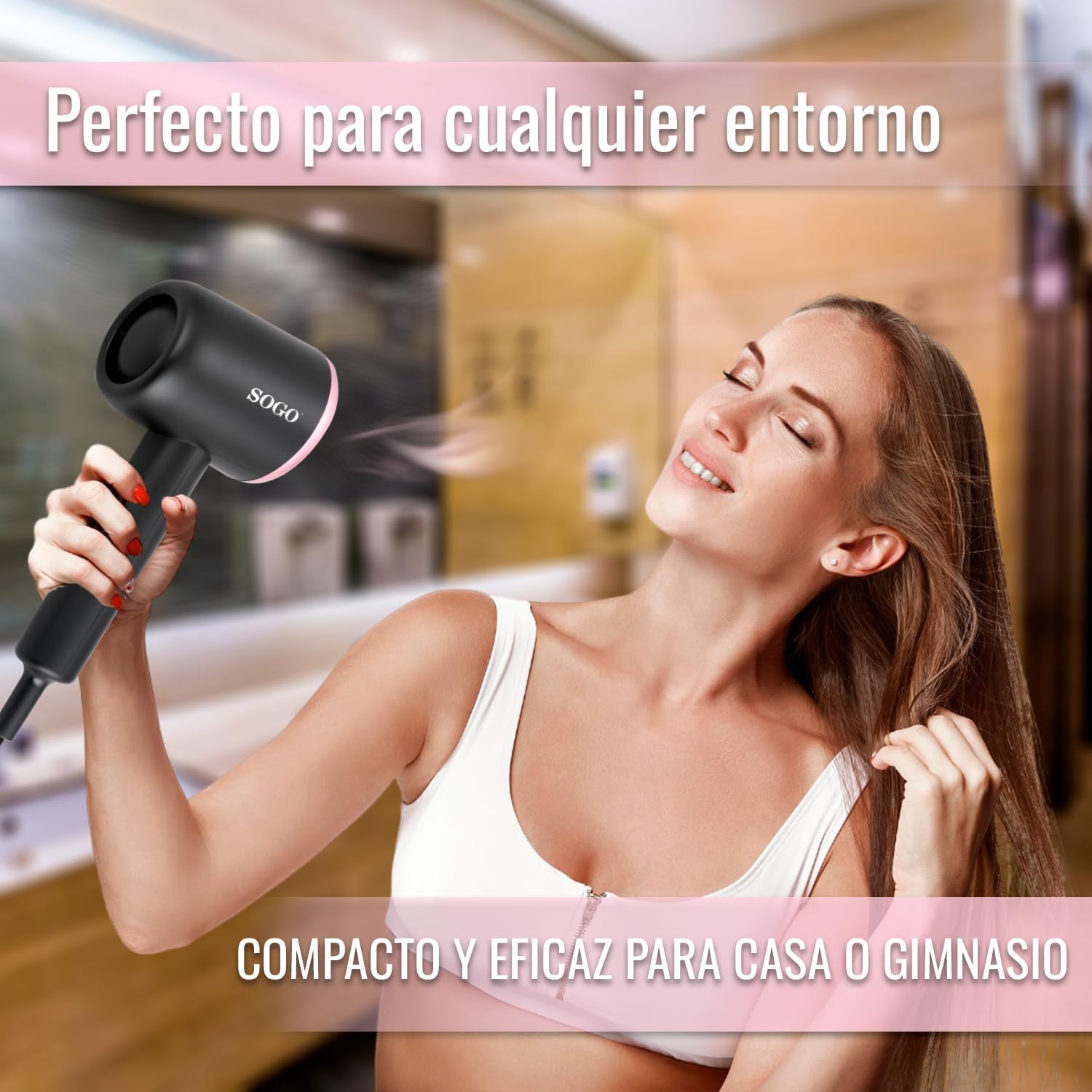 SOGO Kleine haardroger, 1000 W, compact en licht, professioneel, met 2 instelbare snelheden, voor reizen en dagelijks gebruik, met lange kabel 1,8 m