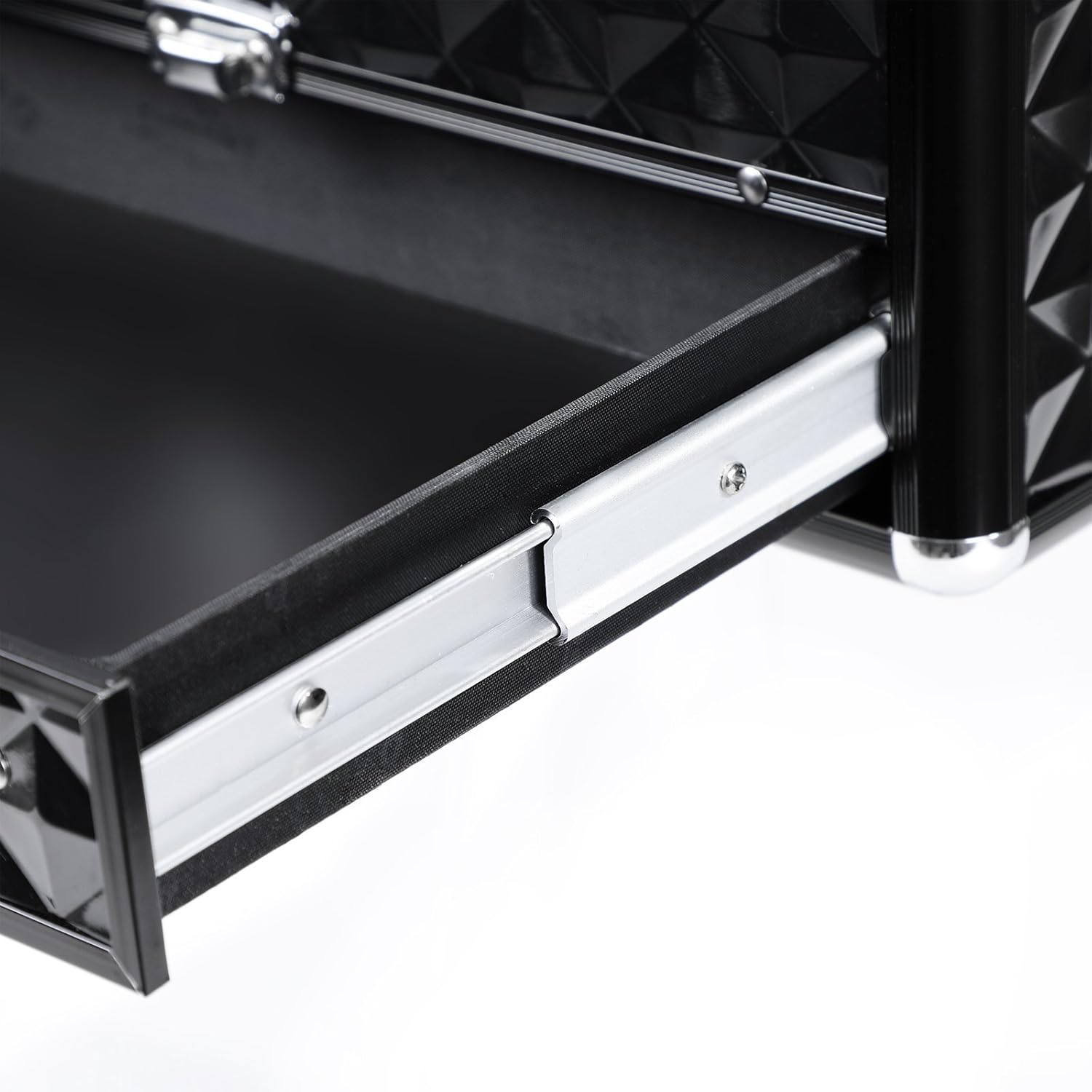 SONGMICS Cosmeticakoffer, professionele cosmeticakoffer, multifunctionele koffer, etagekoffer, transparant acrylglas, inklapbare vakken, XL JBC318B, zwart, 30 cm, cosmeticakoffer