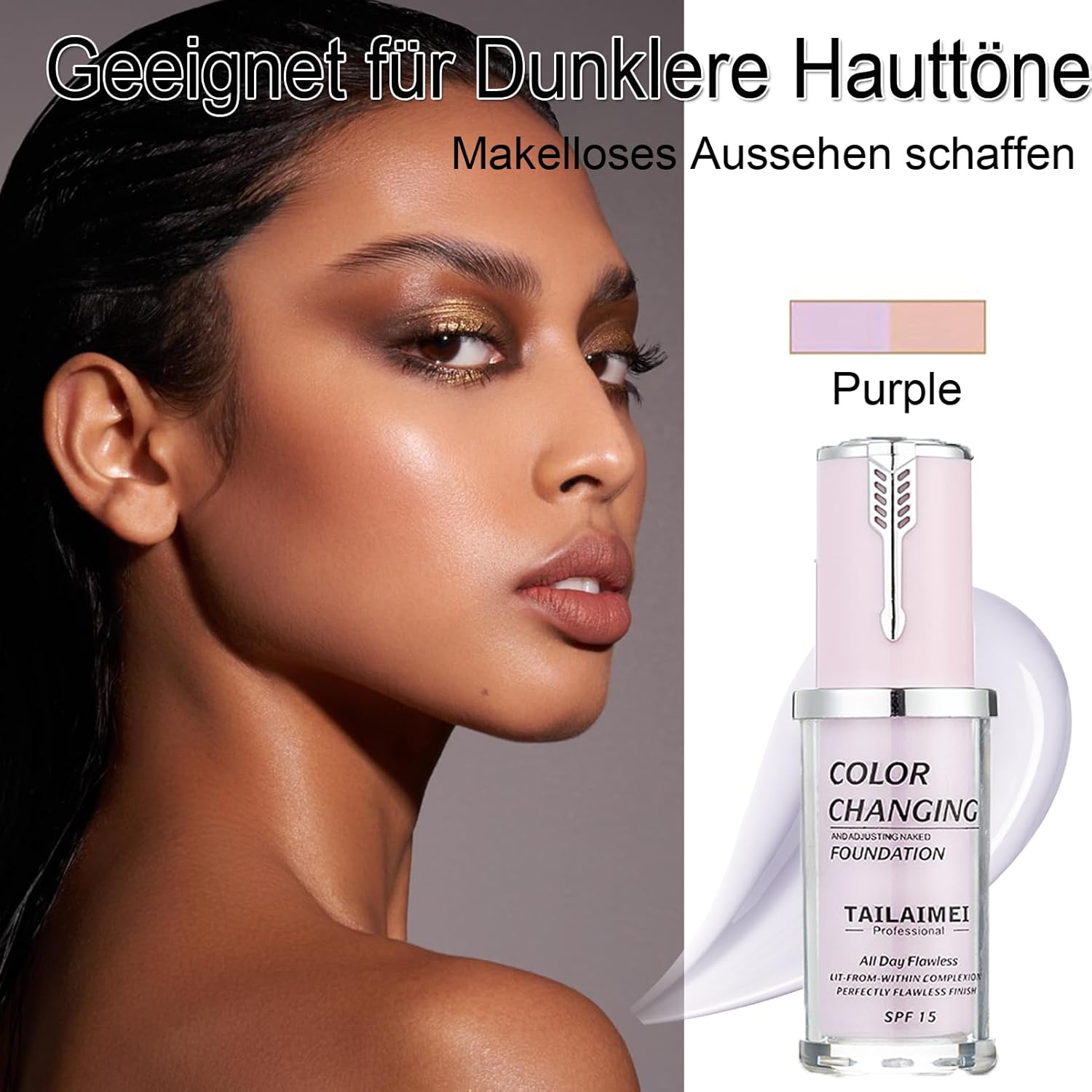 SPF 15 Flawless Concealer Foundation, Makeup, Breathable and Light Liquid Foundation, Makeup, Waterproof Purple Foundation for Dark Skin Tones