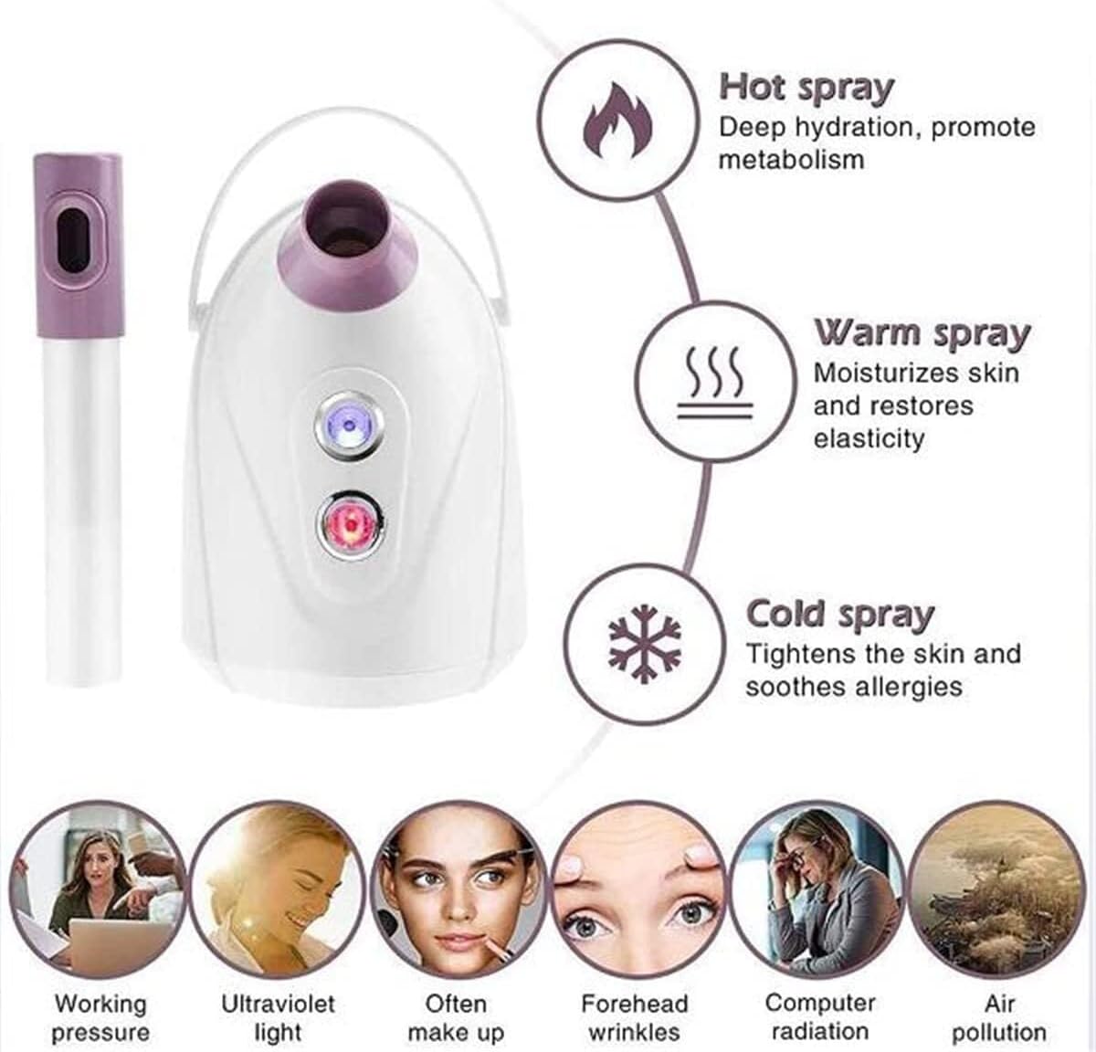 1. MULTIFUNCTIONELE GEZICHTSSTEAMER: Anders dan de traditionele gezichtsstomer, heeft deze stoomboot de functie van het genereren van ozon, wat de opname van voedingsstoffen door de huid versnelt. Naast de basale hydraterende functies, reinigt het ook de poriën, controleert het olie en verstevigt het de huid. Zorg zorgvuldig voor uw huid voor huishoudelijke SPA-machines.