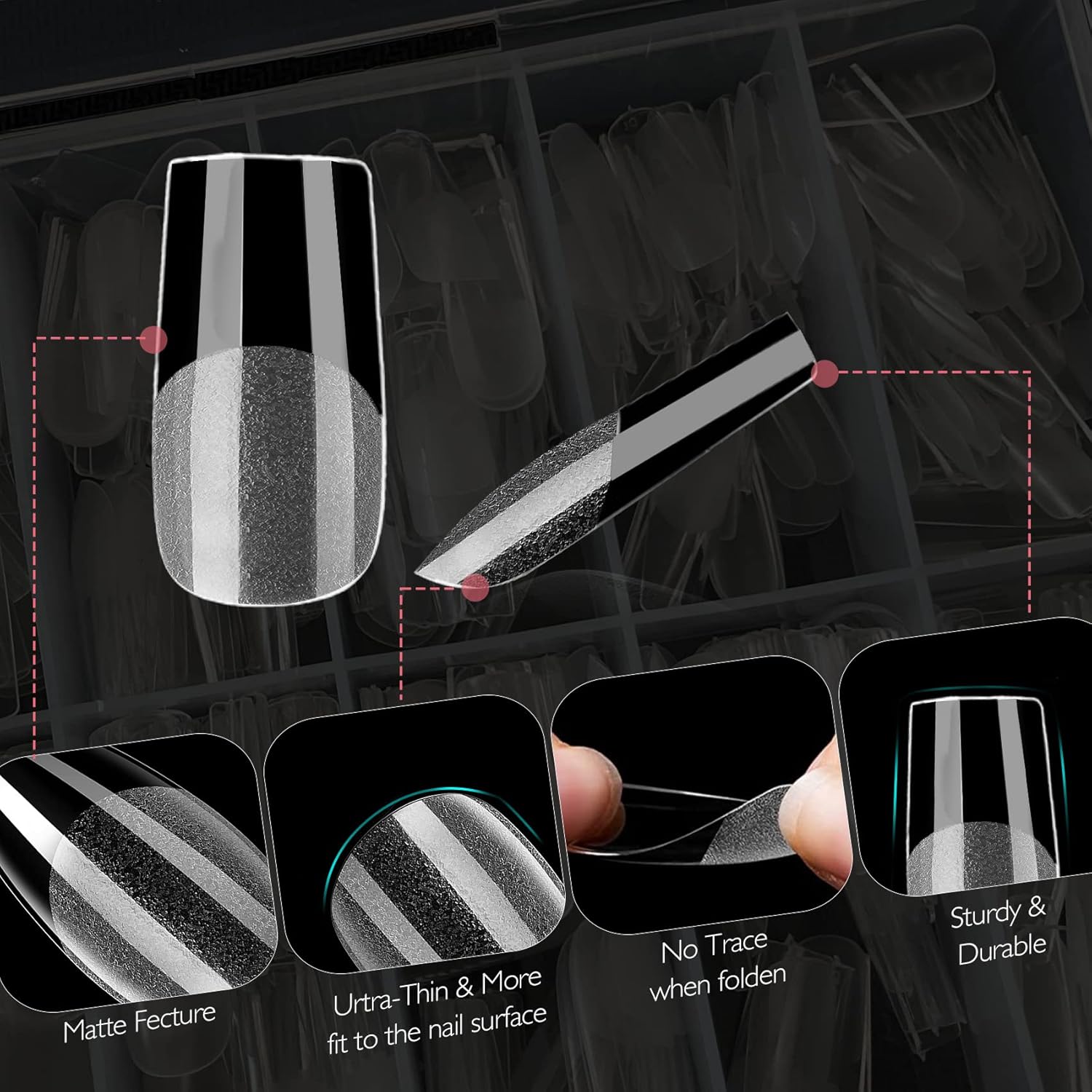 【2022 NEW UPGRADED NAIL EXTENSIONS】 – 504pcs Medium Square Nail Tips have 12 different sizes with 42 false nails of each size, The clear nails tips are marked with the numbers, you can quickly distinguish them even if you accidentally mix them. You can try any size to find the best one for you. Great for nail salon, DIY home nail art.