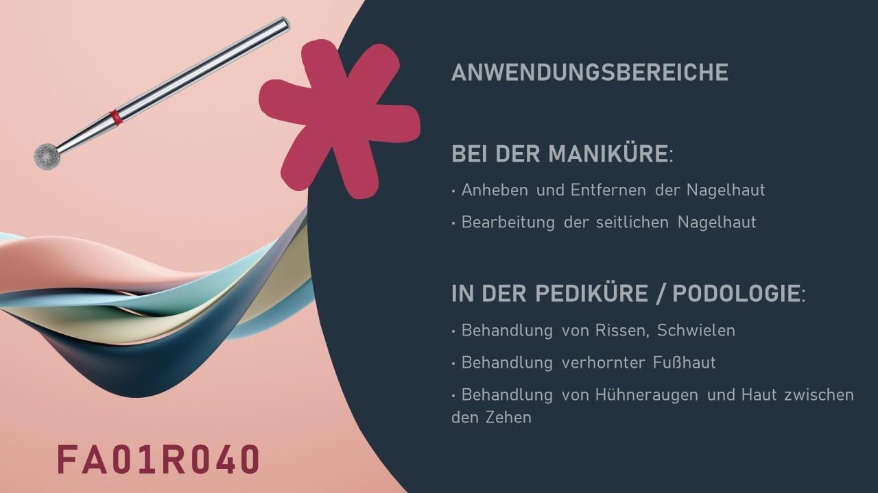 STALEKS PRO – Diamond Bit – Kogel (rode ring) I opzetstuk voor nagelfrezen I BITS VOOR APPARATIEVE MANICUREN EN PEDICUREN I Slijpopzetstuk voor elektrische schuurapparaten I Nail Drill Bit (FA01R040)