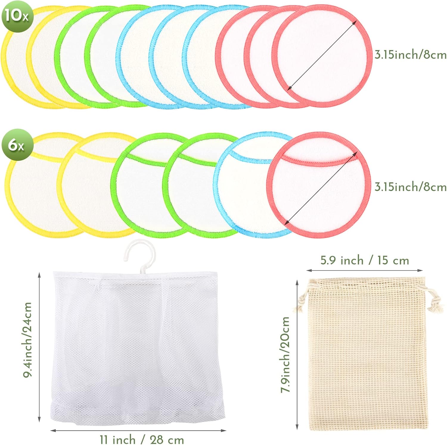 2-DUBBELE LAYER, 16 Pack Make-up Remover Pads – De set bevat herbruikbare make-up remover pads bamboe badstof scrub type en vinger insert type. Wordt geleverd met een katoenen katoenen waszak met trekkoord. Een opbergnet is geschikt voor het opbergen van vuile make-up remover pads, zodat je het netjes kunt houden; Bespaar echt je geld en geen afval dat voldoet aan je behoefte aan make-up remover en huidverzorging.