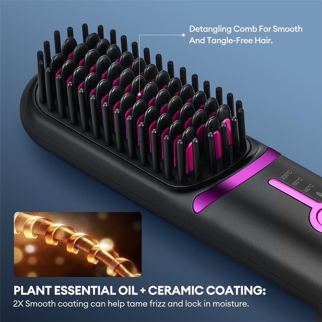 Draagbare draadloze stijlborstel. Je kunt het in de auto, op kantoor of overal mee naartoe nemen om je haar te retoucheren, waar je ook bent. Past probleemloos in je handtas of sporttas. Het is ook een ideaal cadeau voor vrouwen, geliefden of vrienden.