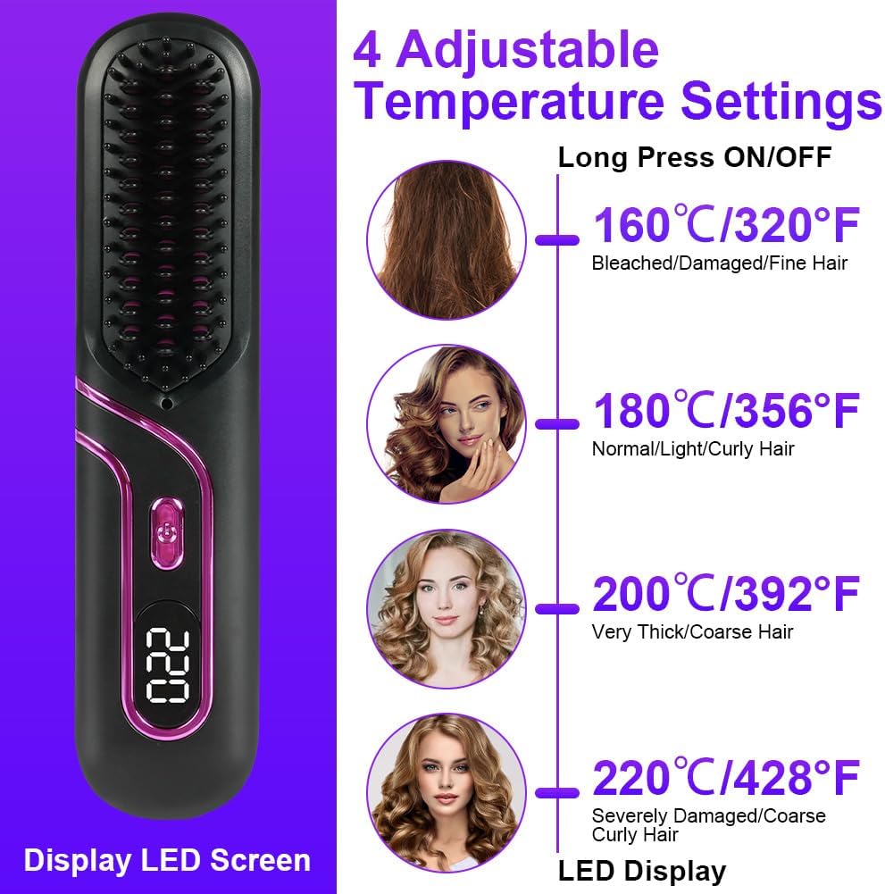 【4 temperatuurmodi】: optionele temperatuur van de stijlkam: 160 °C / 180 °C / 200 °C / 220 °C, je kunt het gebruiken afhankelijk van de haarkwaliteit. Uitgerust met lcd-display is de temperatuurkeuze eenvoudiger.