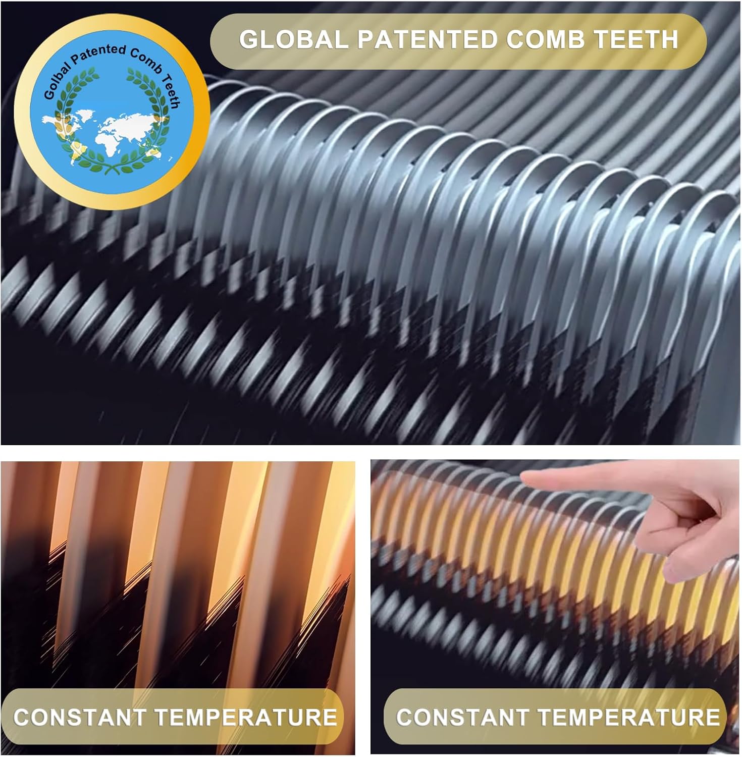 Gepatenteerde 3D-borsteltanden en PTC-verwarming – De stijltangborstel maakt gebruik van wereldwijd gepatenteerde 3D-borsteltanden en PTC-verwarmingstechnologie om gelijkmatige warmte te leveren, pluisvrij haar te garanderen en 60% van de hitteschade te verminderen.