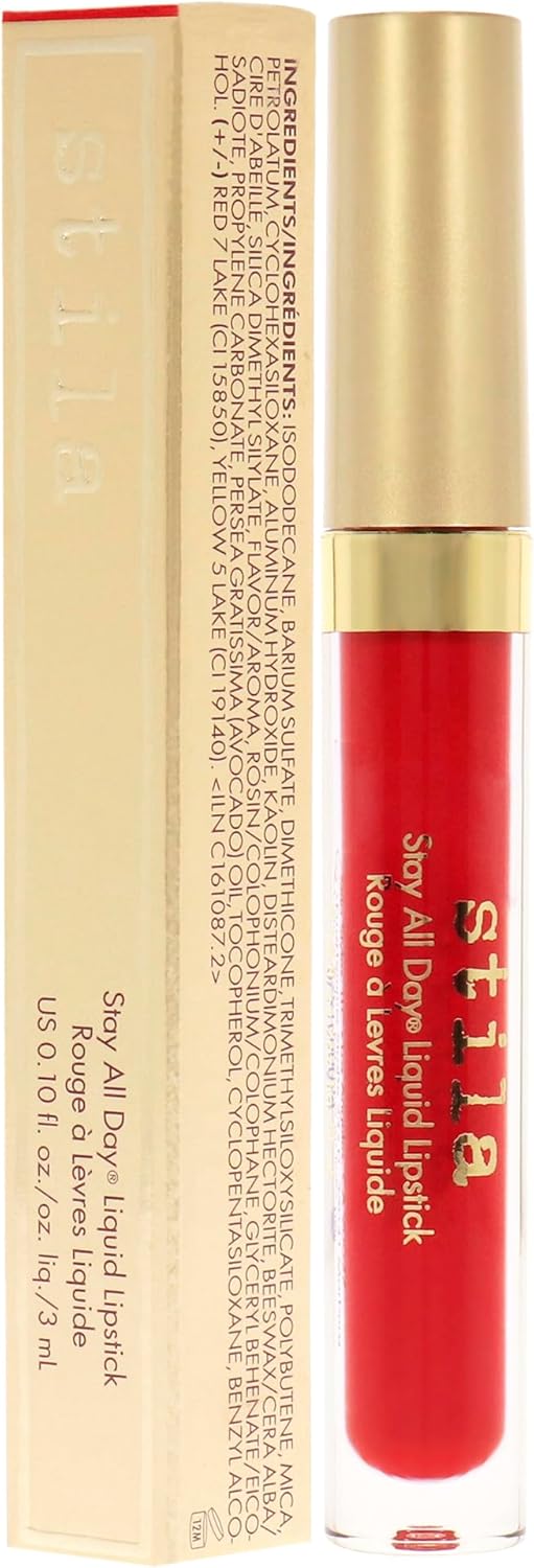 It absolutely does NOT stay all night! It transfers onto everything! I had red lipstick everywhere except where I put it. Very disappointing. I expected so much more from Stila.
