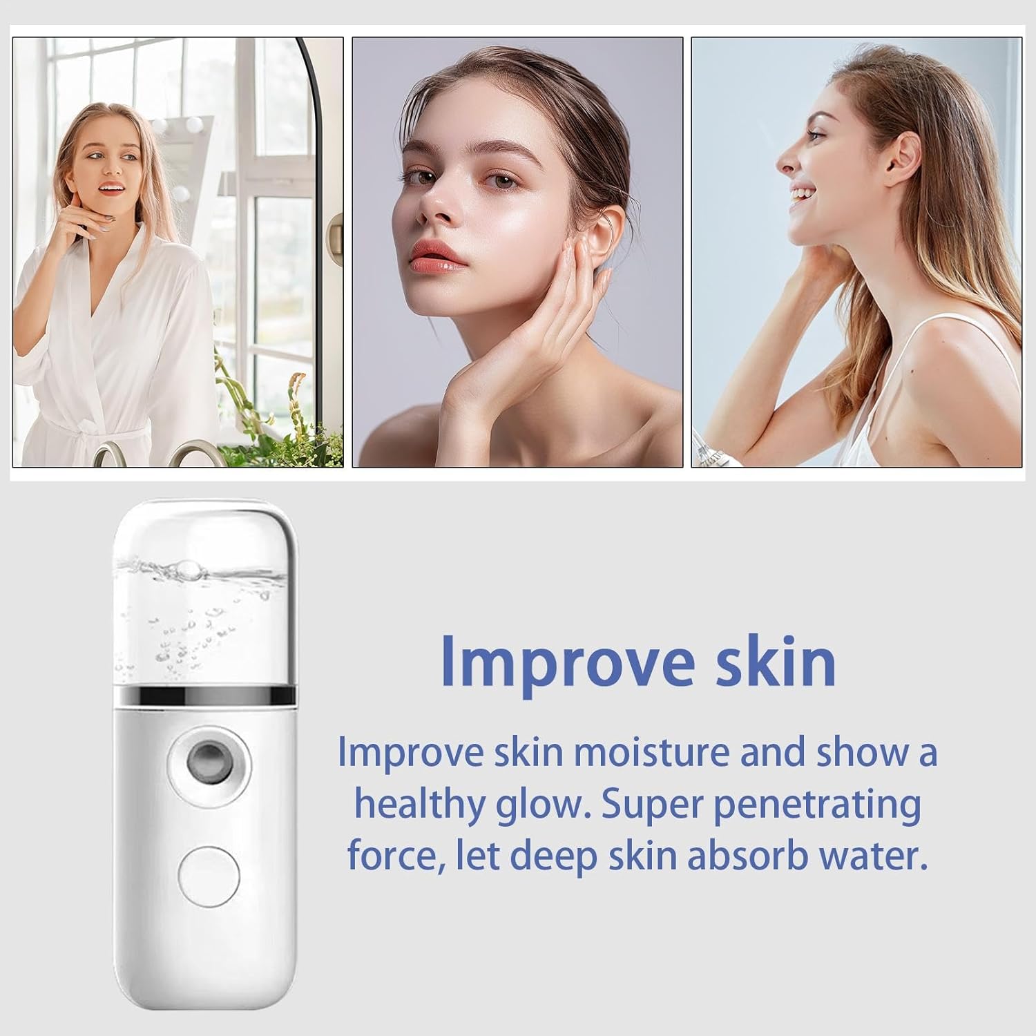 Hydraterende gezichtsmist: Deze draagbare gezichtsstomer fungeert ook als een hydraterende gezichtsmist en helpt je huid de hele dag door te verfrissen en te verjongen. De stoom hydrateert je huid, zorgt voor vocht en laat het zacht en soepel aanvoelen, waardoor het ideaal is voor droge of uitgedroogde huidtypes.