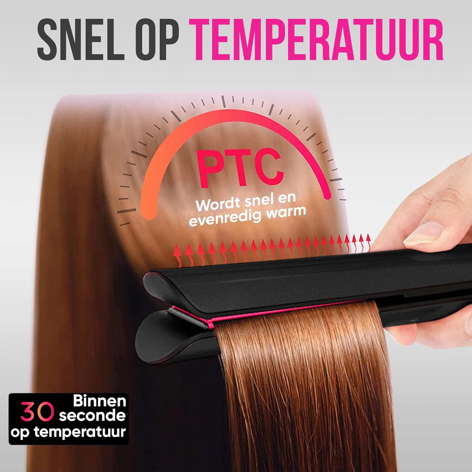 ✓ Zwevende 3D panelen zodat je haar soepel door de stijltang glijdt en niet afbreekt