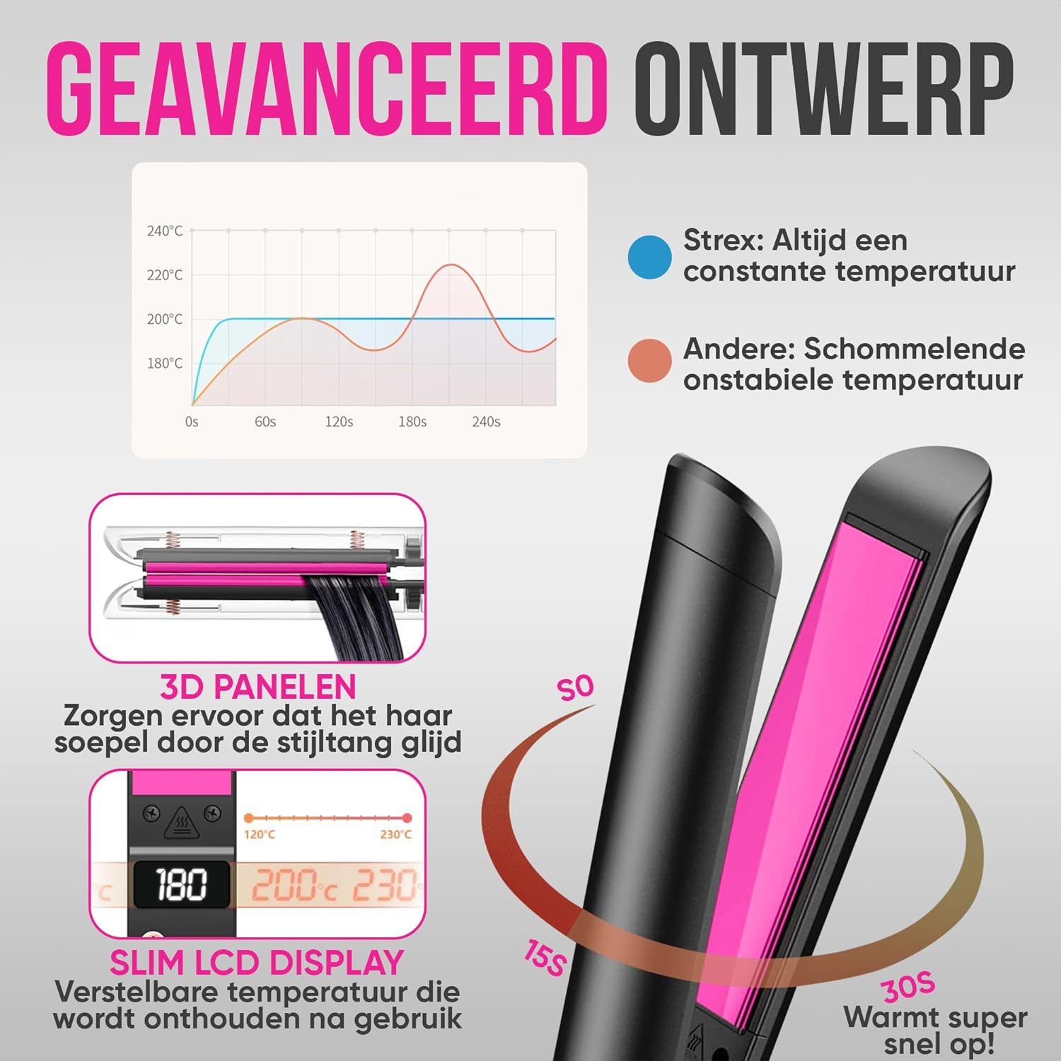 Strex Stijltang – 2 in 1 – Stijlen en Krullen – Keramisch – 120℃/230℃ – Krultang