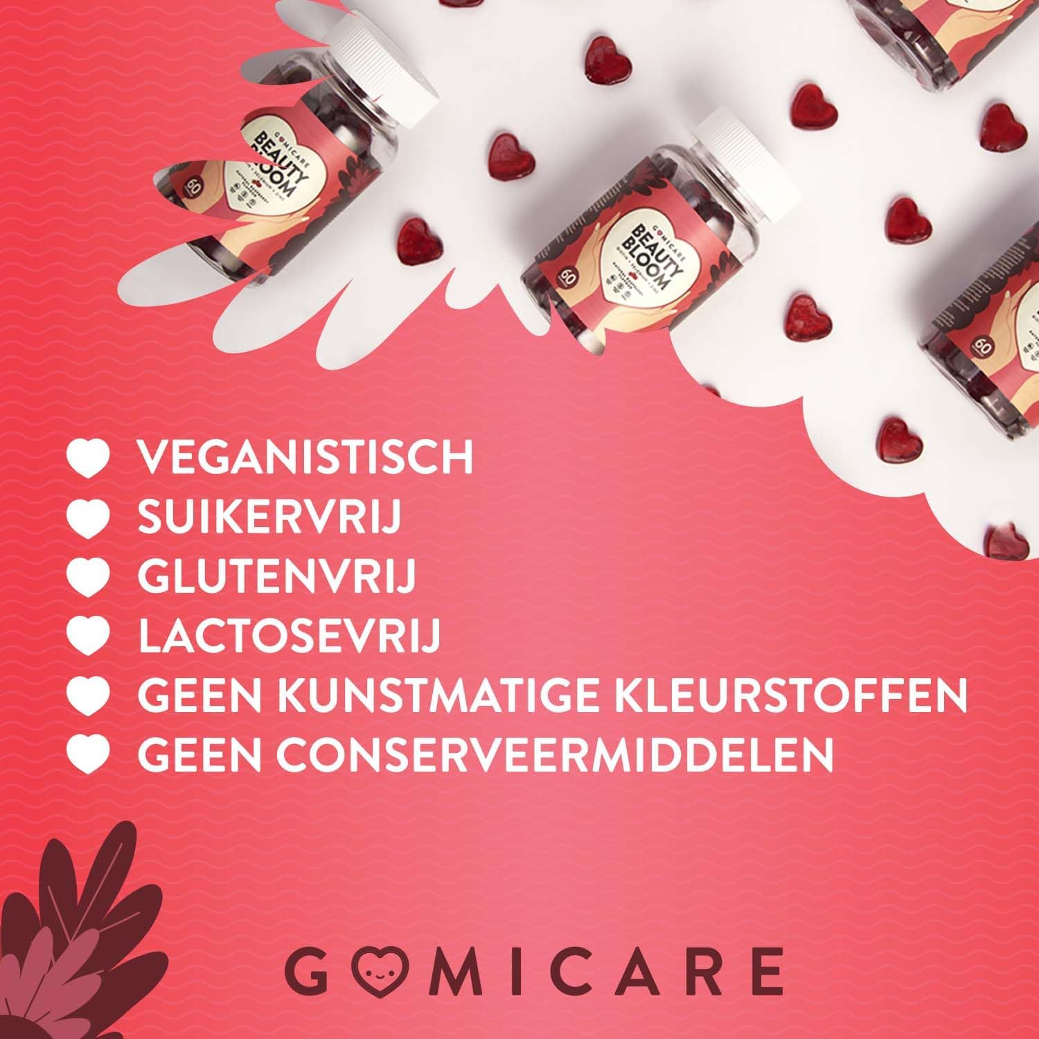 100% vegan en zonder suiker: Onze gummies worden geproduceerd met plantaardige pectine en zijn suikervrij. Alle Gomicare gummies zijn veganistisch, suikervrij, glutenvrij, lactosevrij, vrij van kunstmatige kleurstoffen en vrij van GGO’s.