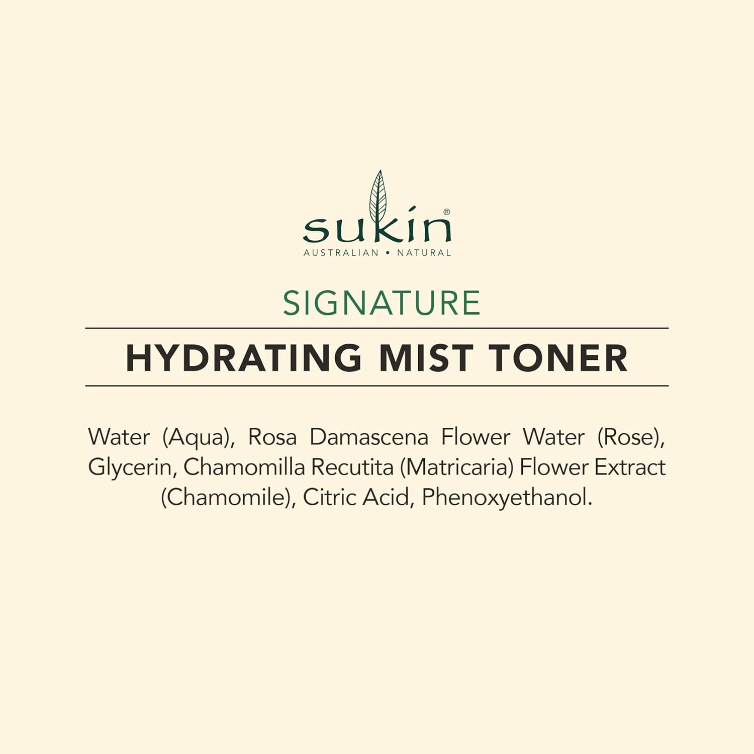 Sukin Signature Hydraterende tonic-spray, 125 ml, zuivert en verfrist vermoeide huid, met rozenwater en kamille, voor gezicht, hals en lichaam, veganistisch