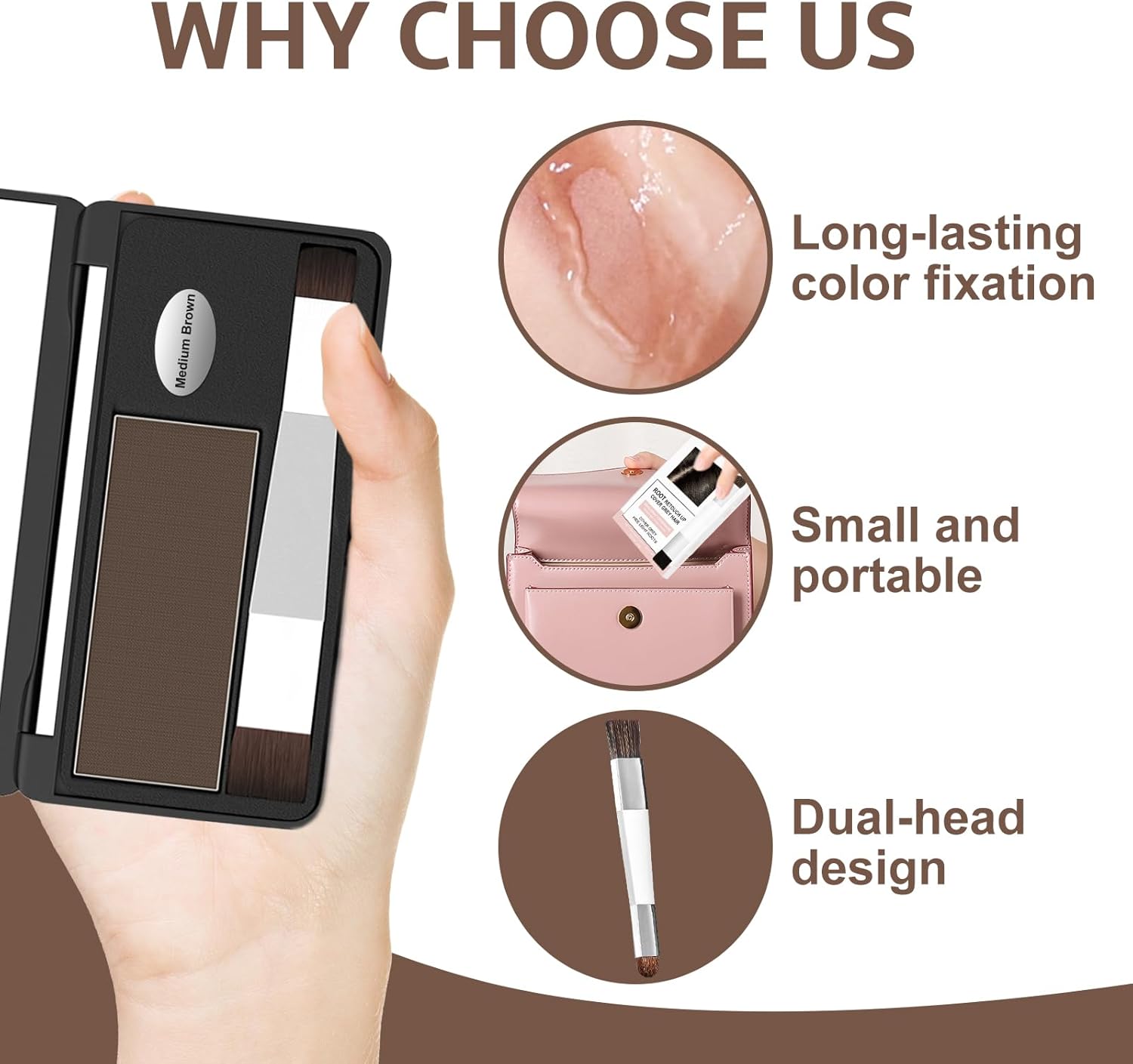 Praktische 3-in-1 set: combineert de functionaliteit van een haaraanzetpoeder, spiegel en precisiekwast in één handig gereedschap, klein en draagbaar, fris je make-up altijd op