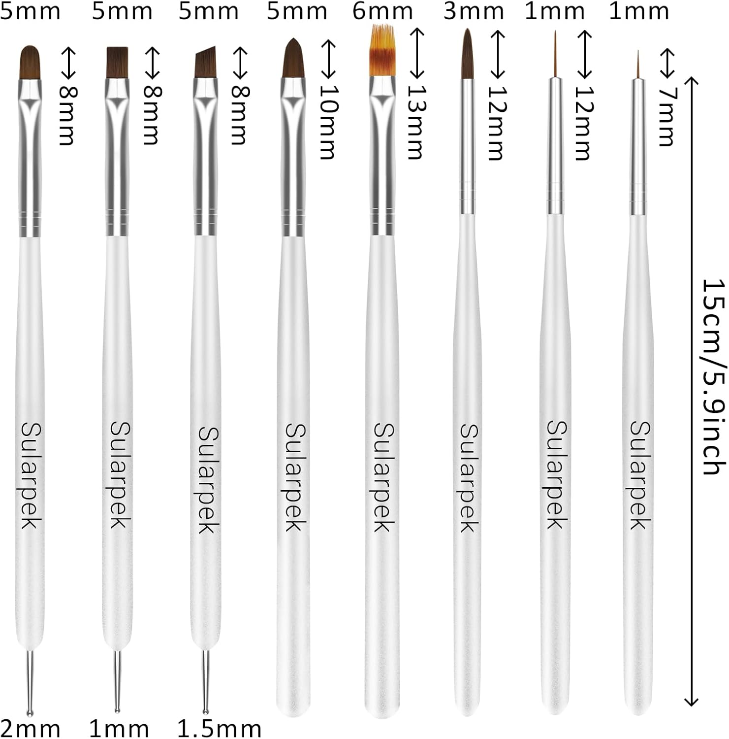 Sulropek 8-delige nagelborstelset, penseel voor gelnagels, nageldesignborstel, nail art dotting tools, nail art penseel voor gel acrylnagels nail art
