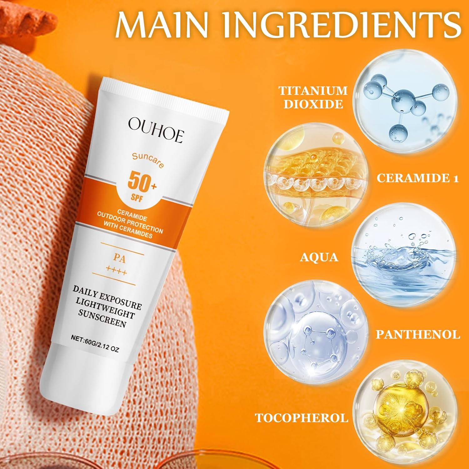 Sun Cream SPF 50, 60 g Sunscreen SPF 50 with Ceramides, Moisturising Sun Cream, Non-greasy, Strong UVA-UVB Protection, Protection Factor 50, for All Skin Types