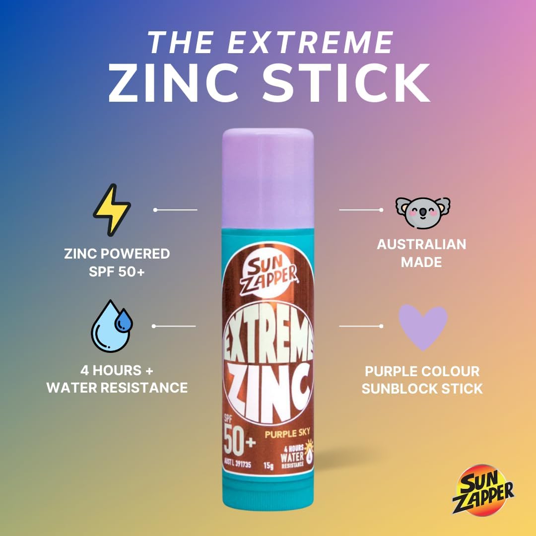 Sun Zapper (Purple Sky) Extreme Zinc Mineral Sunscreen Stick – SPF 50+ UVA/UVB Protection – Purple Color – Made in Australia