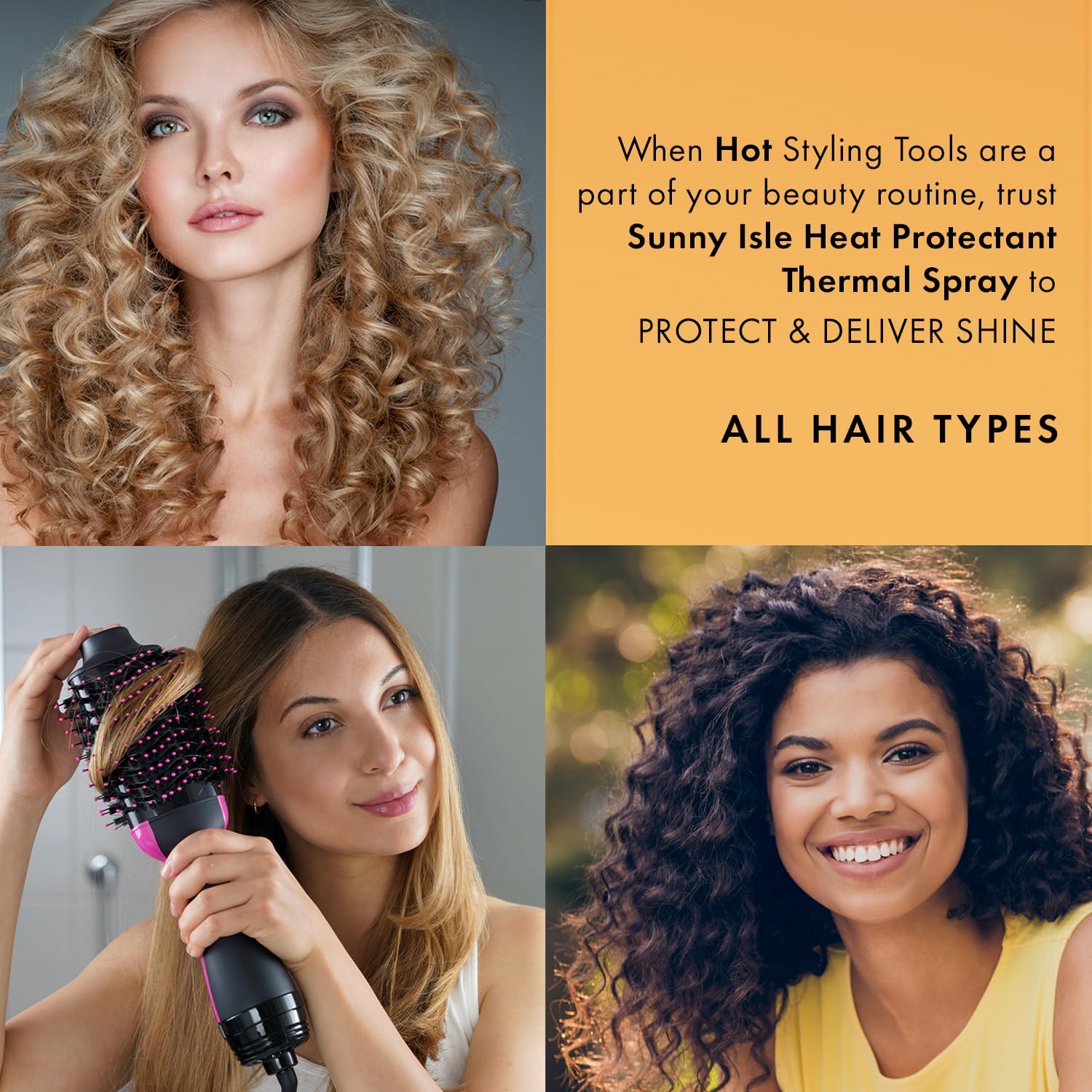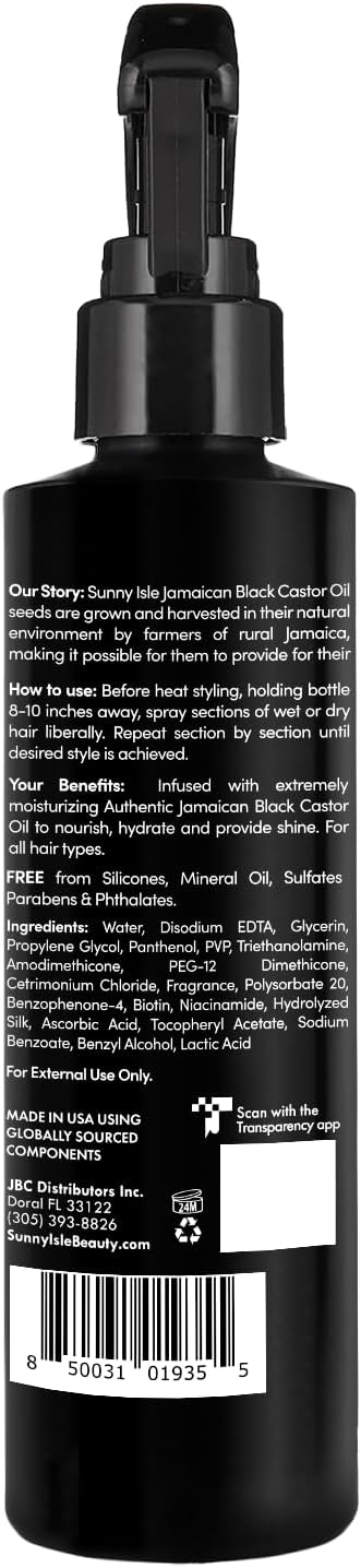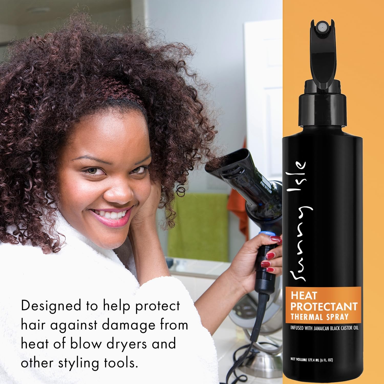Heat Protection Thermal Spray: Sunny Isle Heat Protectant Thermal Spray relieves worries about using styling irons and hair dryers on your hair. Our thermal hair protection spray infused with Jamaican Black Castor Oil helps seal and protect your hair from heat damage and provides a shiny shine.