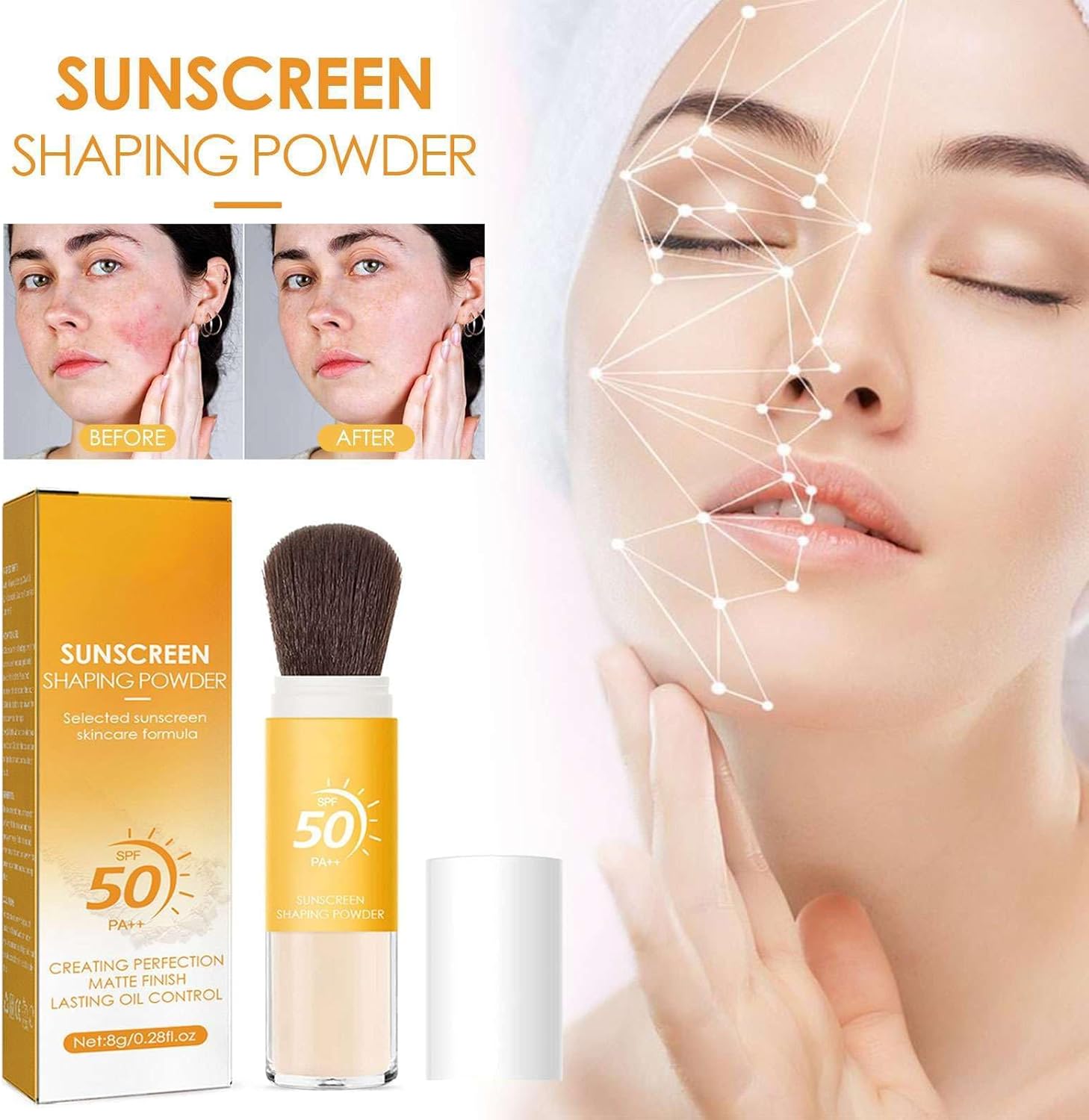 【Olie gecontroleerd, absorbeert vocht】Effectieve oliecontrole, olie-absorptieformule, kan basismake-up, houdt vocht vast, bereikt een echt duurzaam effect, een aanraking ter verbetering van de gehele make-uptextuur. Geschikt voor alle huidtypes, ook voor de gevoelige huid.