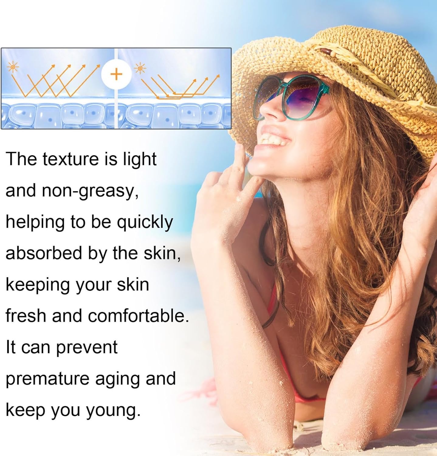🌟【Beschermt tegen UVA- en UVB-stralen】: de vochtinbrengende zonnecrème met beschermingsfactor 50+ beschermt tegen UVA-stralen, die vroegtijdige huidveroudering veroorzaken en tegen UVB-stralen die langdurige huidschade kunnen veroorzaken.