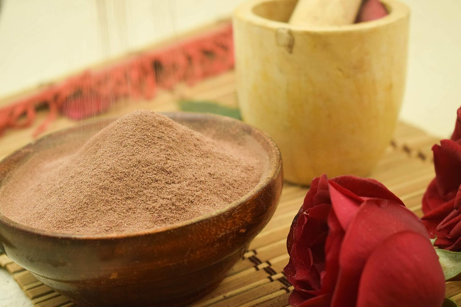 NATUURLIJKE HUIDVERHELDERENDE EN REINIGENDE WERKING: Rozenblaadjespoeder is 100% natuurlijk en werkt als een soepele exfoliator. Hoewel exfoliators meestal een grove textuur hebben, kan met behulp van rozenblaadjespoeder een gladde pasta worden gemaakt om dode huidcellen en vuil te verwijderen en je poriën te reinigen.