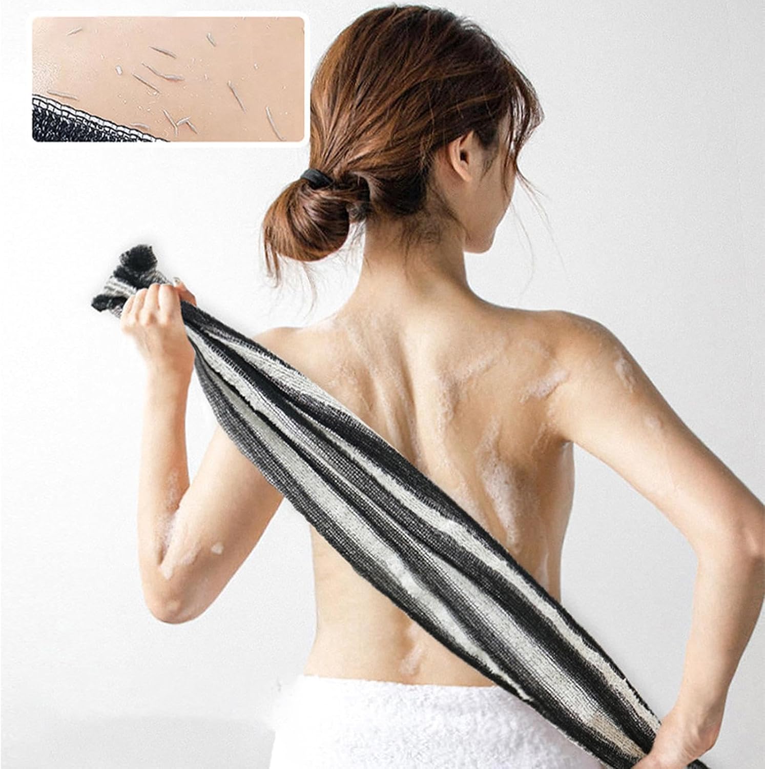 Multifunctioneel ontwerp: Zeg vaarwel tegen ruwe huid met onze Body Scrub Doek. De krachtige peeling verwijdert hardnekkige nagelriemen en het unieke ontwerp laat je moeilijk bereikbare plekken op je rug, armen en benen bereiken. Ideaal voor mannen, vrouwen en kinderen, deze doek is perfect voor een totale lichaamscrubbing