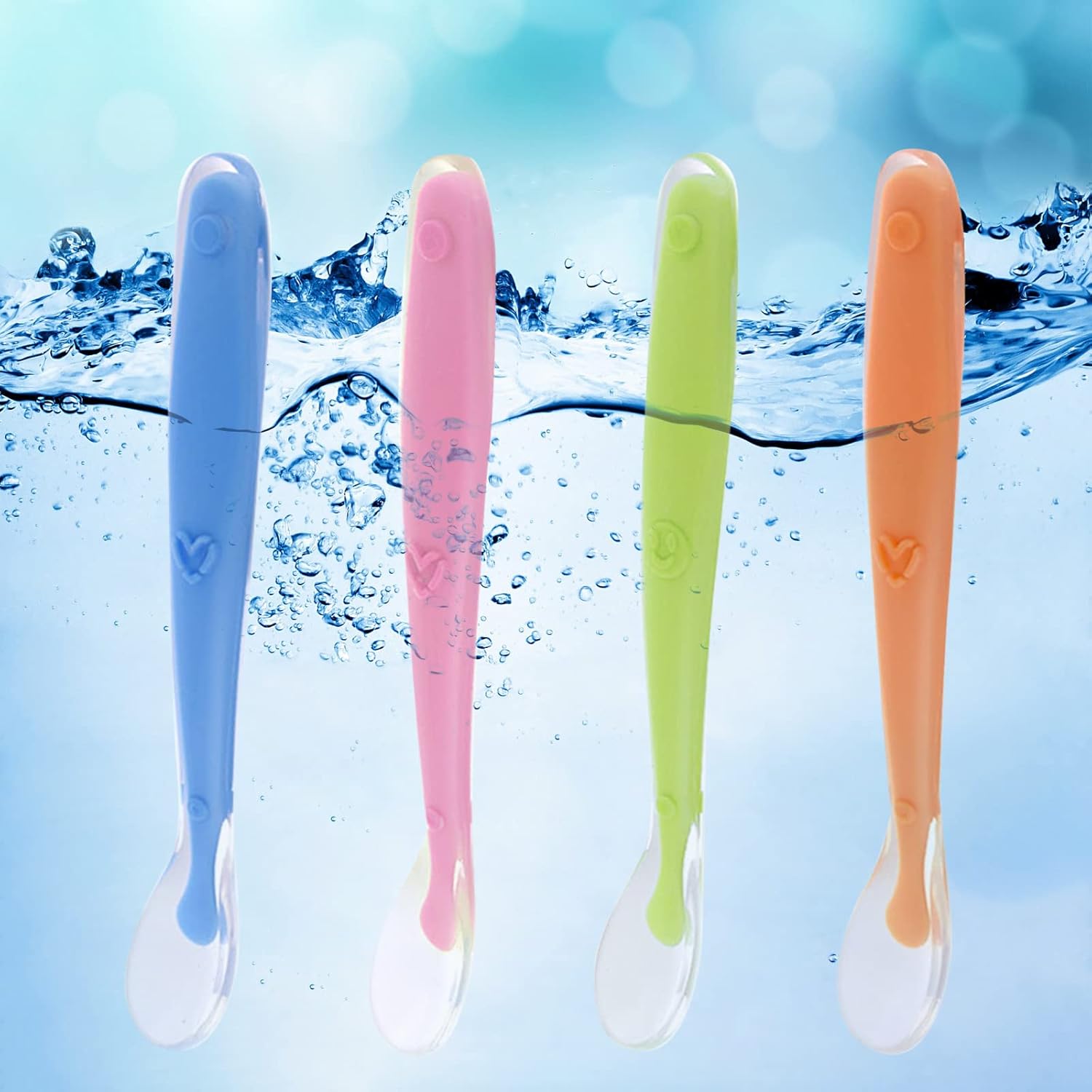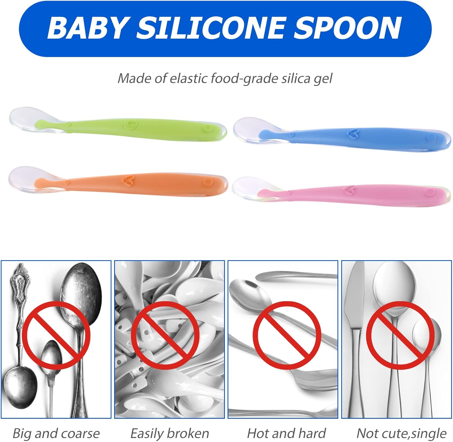 SWYSGS Baby siliconen zachte lepel, beste eerste fase baby zuigeling lepel BPA vrij, zachte siliconen baby training voeding lepel voor magnetron, vaatwasser en vriezer veilig (4 stuks)