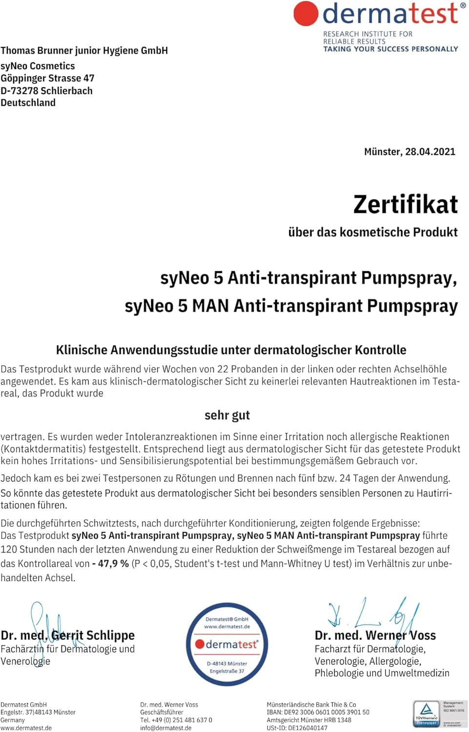 ✅DERMATOLOGISCHE TESTING: syNeo 5 is dermatologisch getest door het gerenommeerde instituut Dermatest. De doeltreffendheid en de hoge huidverdraagzaamheid werden door het onafhankelijke instituut Dermatest bevestigd en met “zeer goed” beloond. syNeo 5 beschermt uw huid tegen irritatie en voorkomt dat ze uitdroogt – zelfs bij langdurig gebruik! Zelfs mensen met neurodermitis kunnen syNeo 5 vaak zonder problemen gebruiken. Je hoeft niet langer genoegen te nemen met brandende oksels.