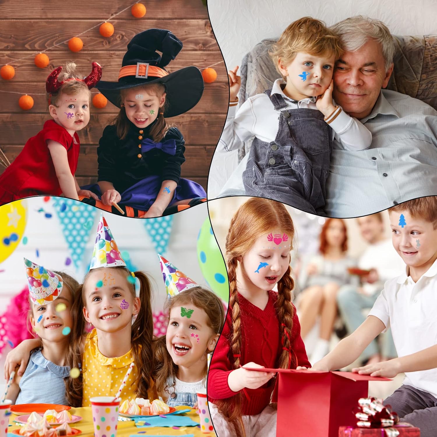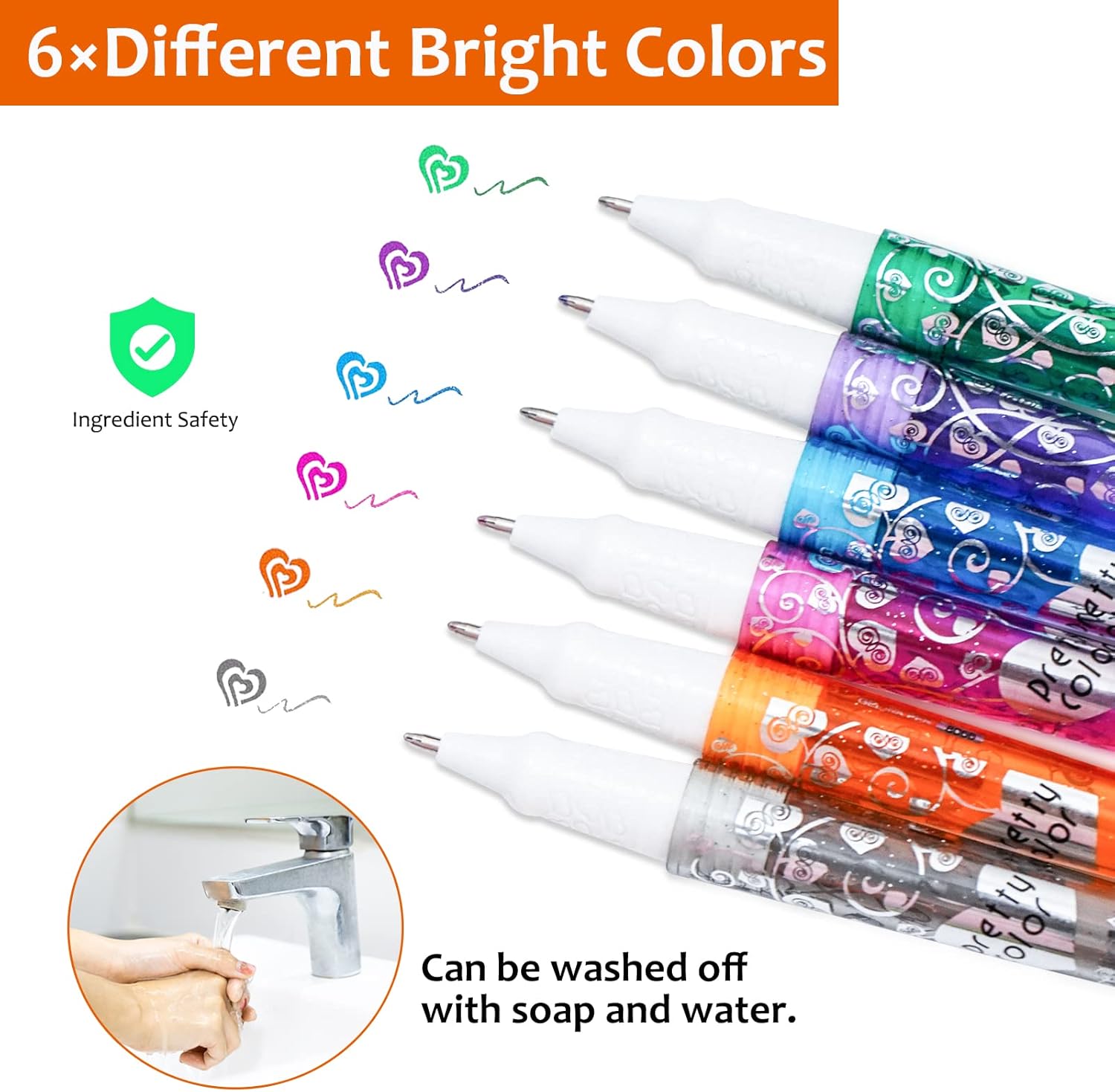 6 kleuren glittertattooset: groen, roze, oranje, zilver, paars en blauw, kleurrijke doe-het-zelf tatoeages die je in een handomdraai het hoogtepunt van het feest maken.