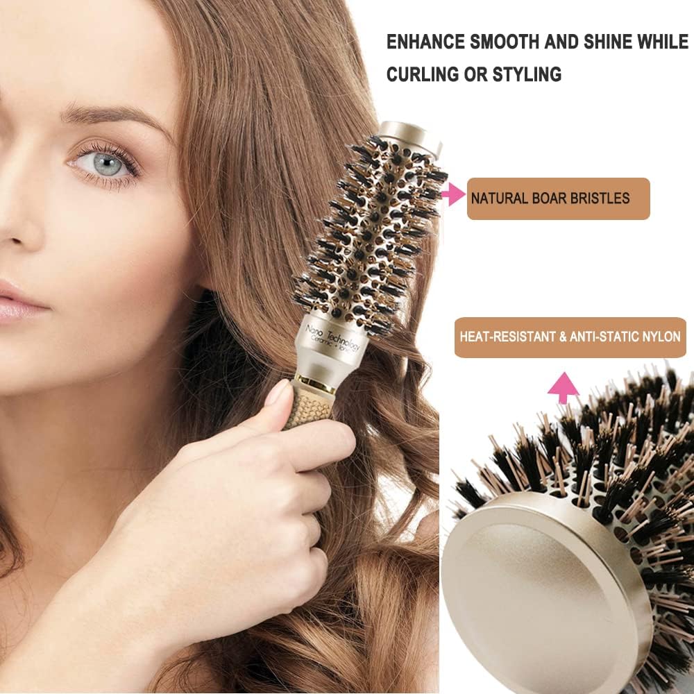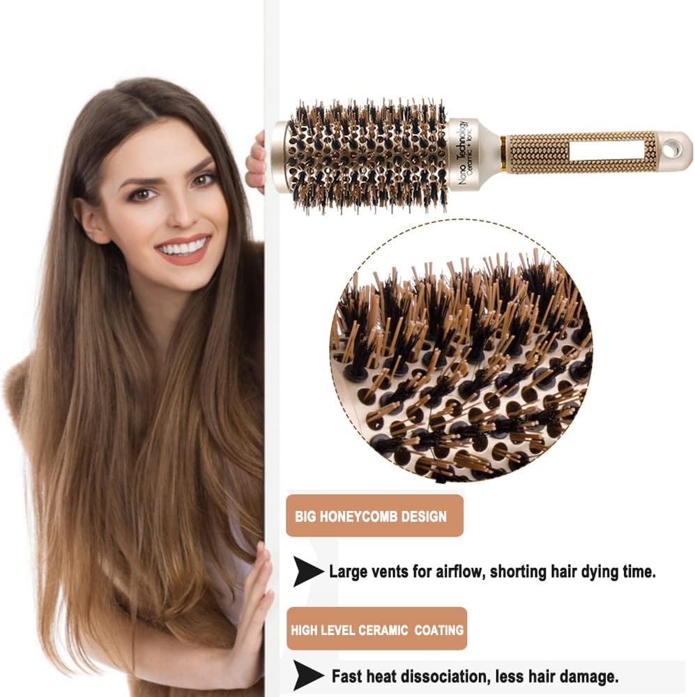 Boar Bristle toegevoegd in deze ronde borstel, helpen kroezen te verminderen, glanzend haar te bevorderen en vocht in het haar te trekken tijdens het drogen, maakte je haren gladder, zachter en zijde.Perfect voor het drogen, stylen en behouden van gezond, glanzend en volumeus haar.