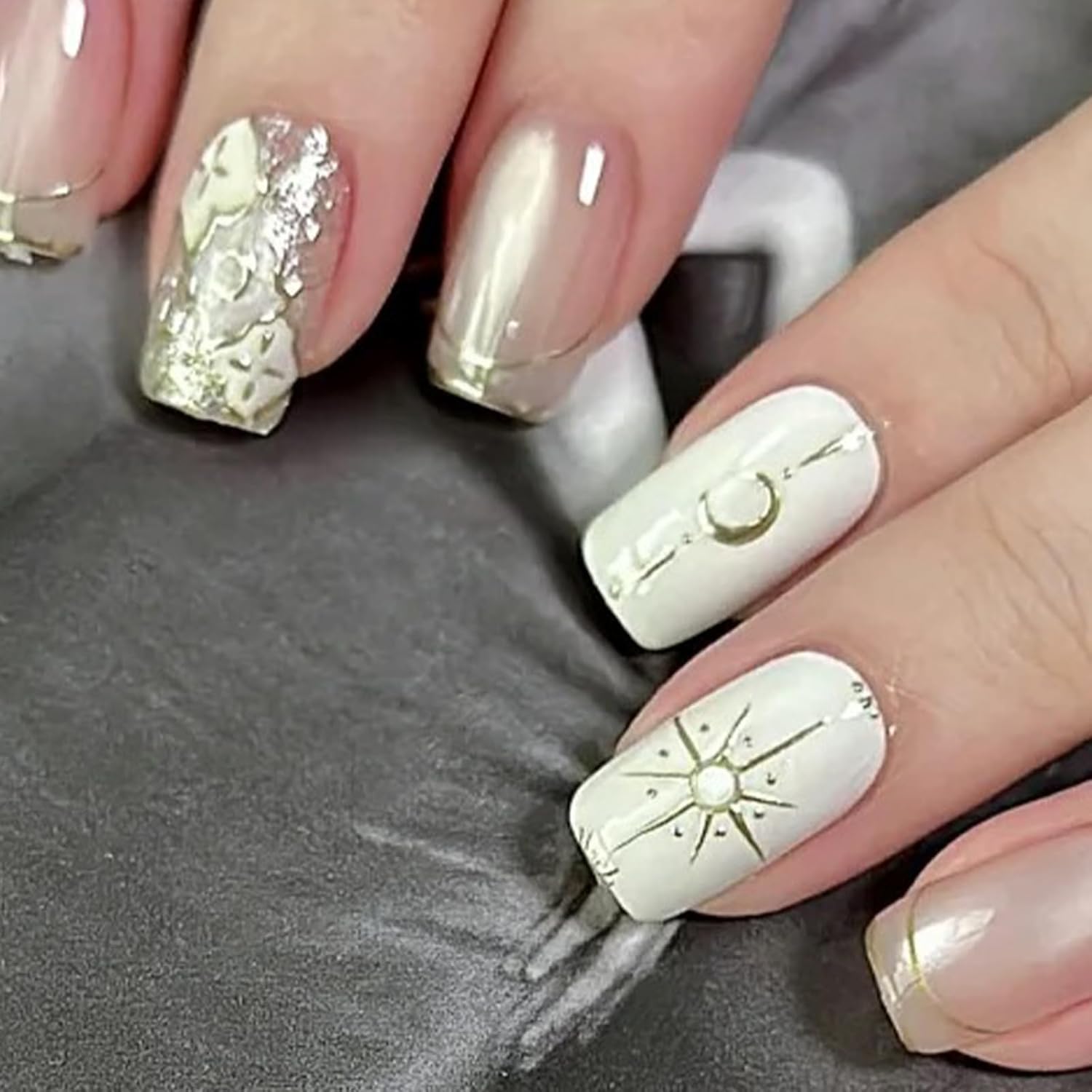 Luxe nagelkunst: met de TELAIN nagelstickers kun je indrukwekkende nagelontwerpen creëren. De unieke 3D-designs met maan- en stermotieven geven je nagels diepte en dimensie. Het gouden bronzen effect zorgt voor een luxe en professionele uitstraling die alle aandacht trekt. Perfect voor iedereen die zijn nageldesign naar een hoger niveau wil tillen