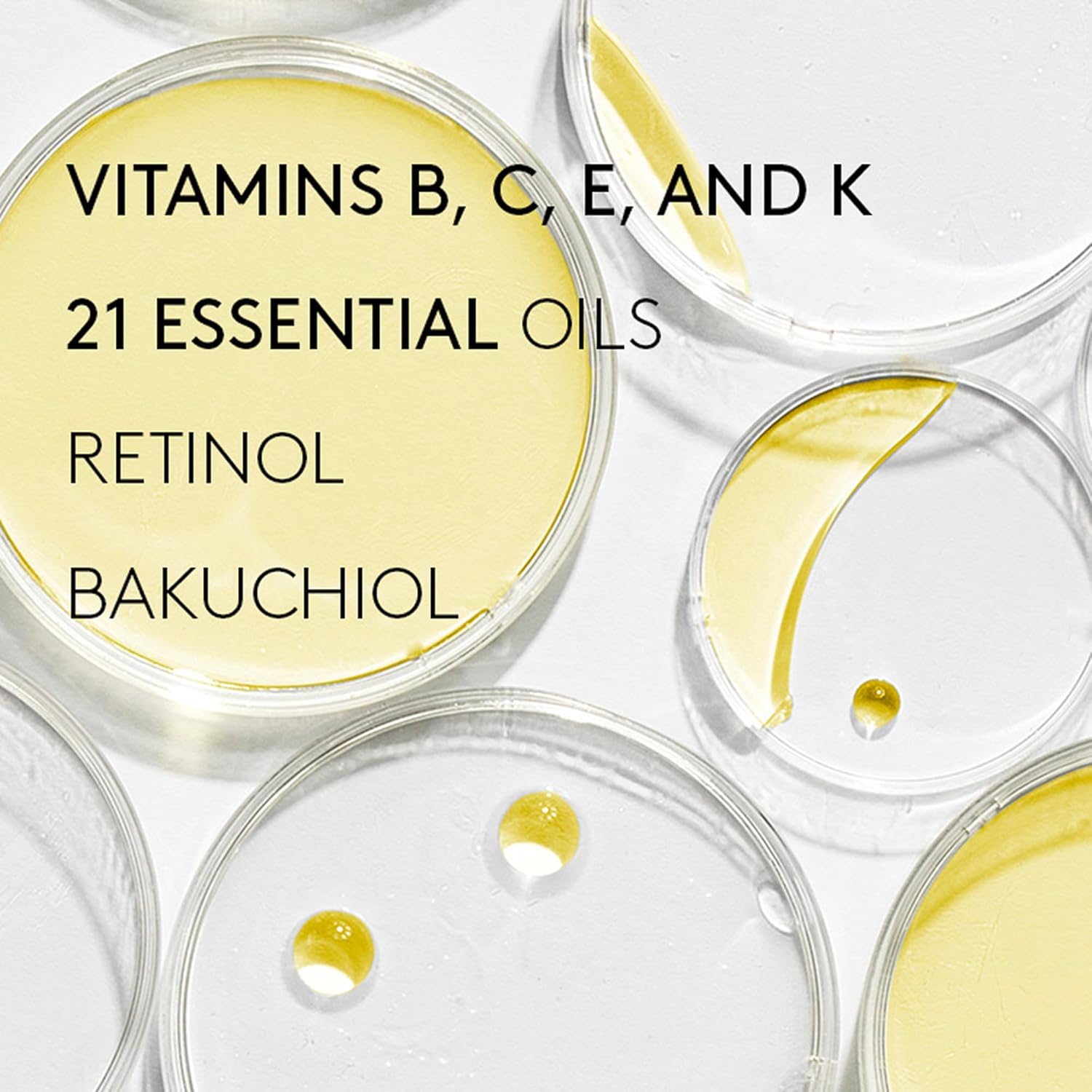 INGREDIENTS | 21 transforming oils with antioxidants, vitamins and Bakuchiol, known as natural retinol that reduces fine lines, improves elasticity and enhances skin texture and smoothness.