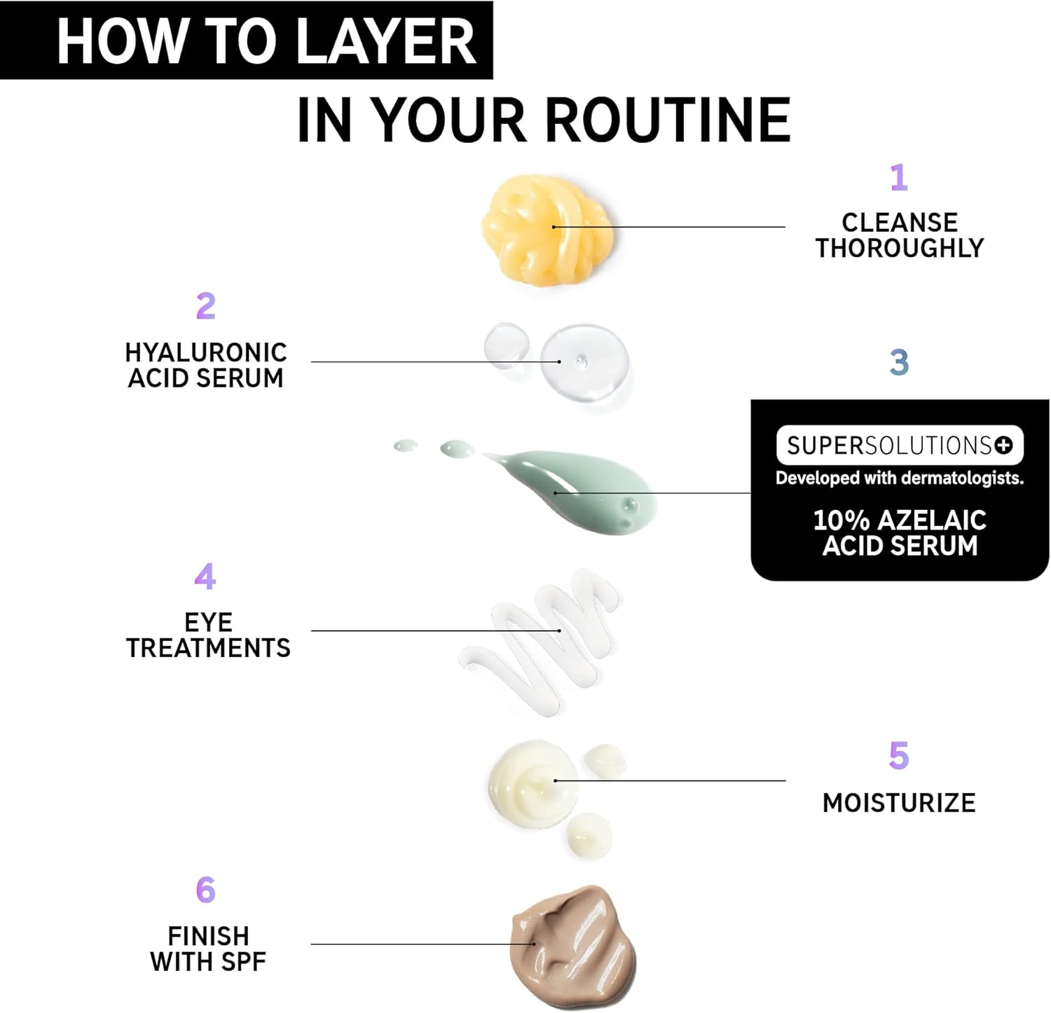 10% Azelaïnezuur helpt de roodheid zichtbaar te verminderen, geeft de huid een meer egale teint en verzacht en kalmeert de huid onmiddellijk.