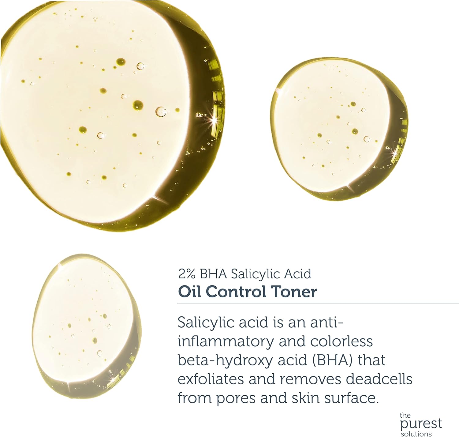 The Purest Solutions Oil Control Toner (2% BHA Salicylzuur) – Vette, poriënbalancerende toner voor acne en littekens – Doelgerichte formule voor mee-eters – Veganistisch | Wreedheidvrij | Milieuvriend