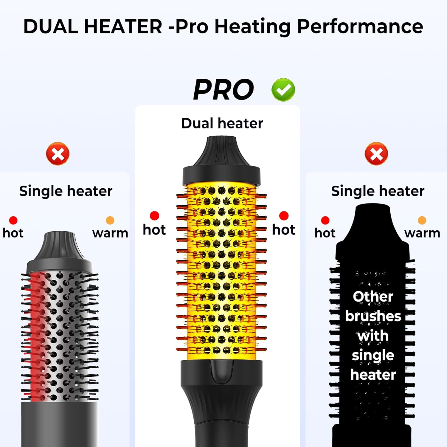 Warmteborstel zonder luchtdesign: geen soort warme luchtborstel, haardroger/roterende borstel. Deze thermische borstel is een verwarmde ronde borstel voor het gladmaken en stylen van het haar, maar niet het type heteluchtborstel. De 38 mm ionische thermoborstel combineert de functies van een krultang, een ronde borstel en een stijltang. Het gladmaken, krullen, volume geven en masseren van de hoofdhuid. Glijdt door je haar zonder het te verwarren, maar laat het glanzend en mooi achter.