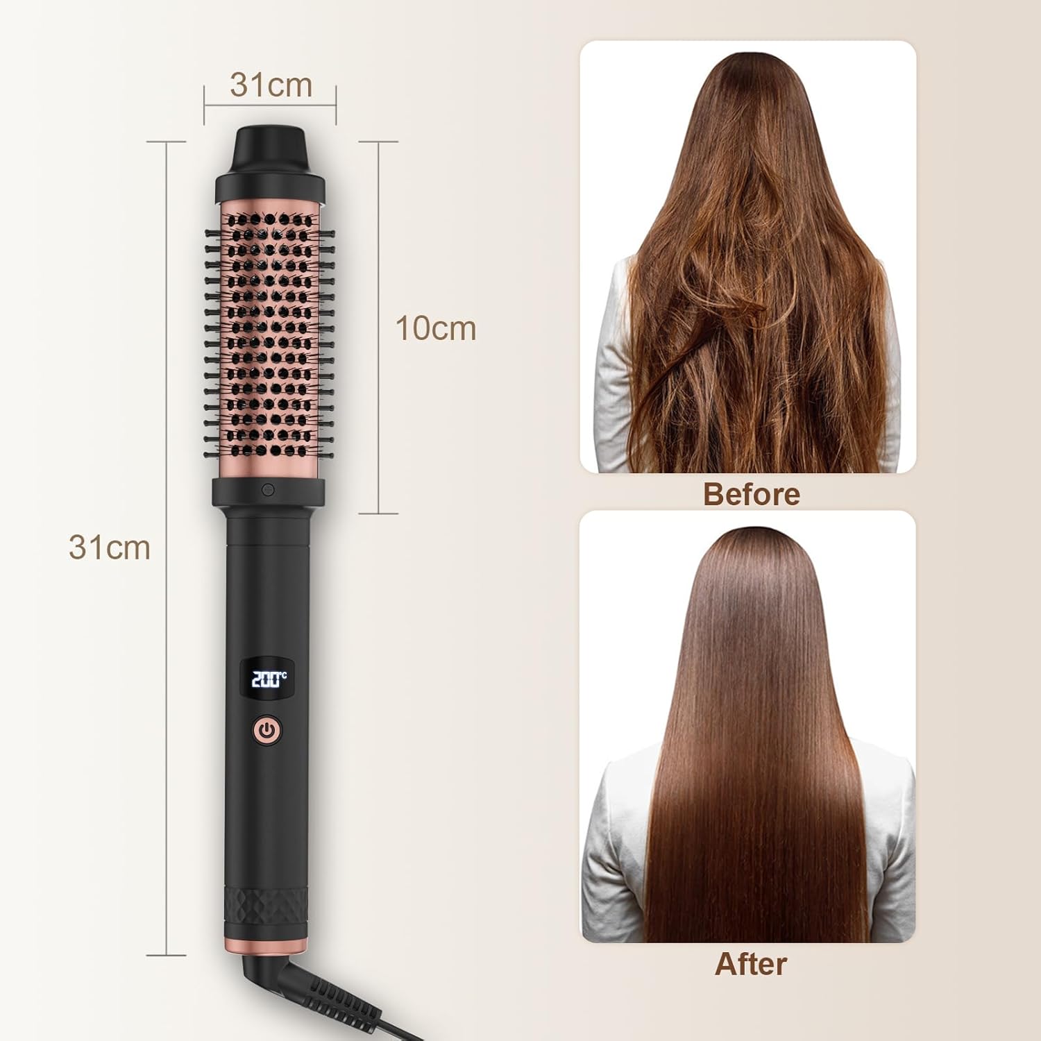 ☑️️ 3-in-1 thermische borstel biedt een instelbare temperatuur van 120°C tot 200°C, weergegeven op een LCD-scherm voor nauwkeurige bediening. De brede en niet-verwarde borstelharen maken het gemakkelijk vast te pakken en soepel over het haar te glijden, voorkomen klitten en bieden meer comfort bij het stylen.