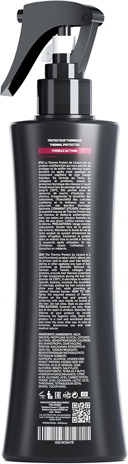 Thermo Protect Lissara Spray met collageen en proteïne-tannine – Haarverzorging Heat Protector 230 ° C – Reparatie en bescherming zonder uitspoelen – Stijltang en Brazilian Straightening – 300ml
