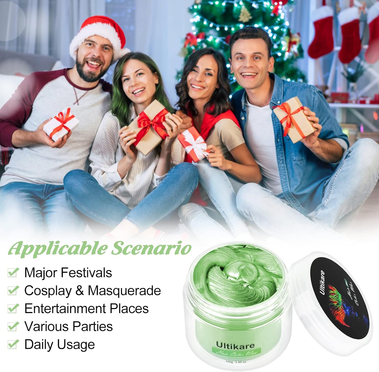Tijdelijke Haarkleur Crème, Ultikare Haarkleur Wax Tijdelijke Haarkleur Set Instant DIY Cosplay voor Carnaval Kerstmis Halloween Partijen voor Mannen en Vrouwen (Groen)