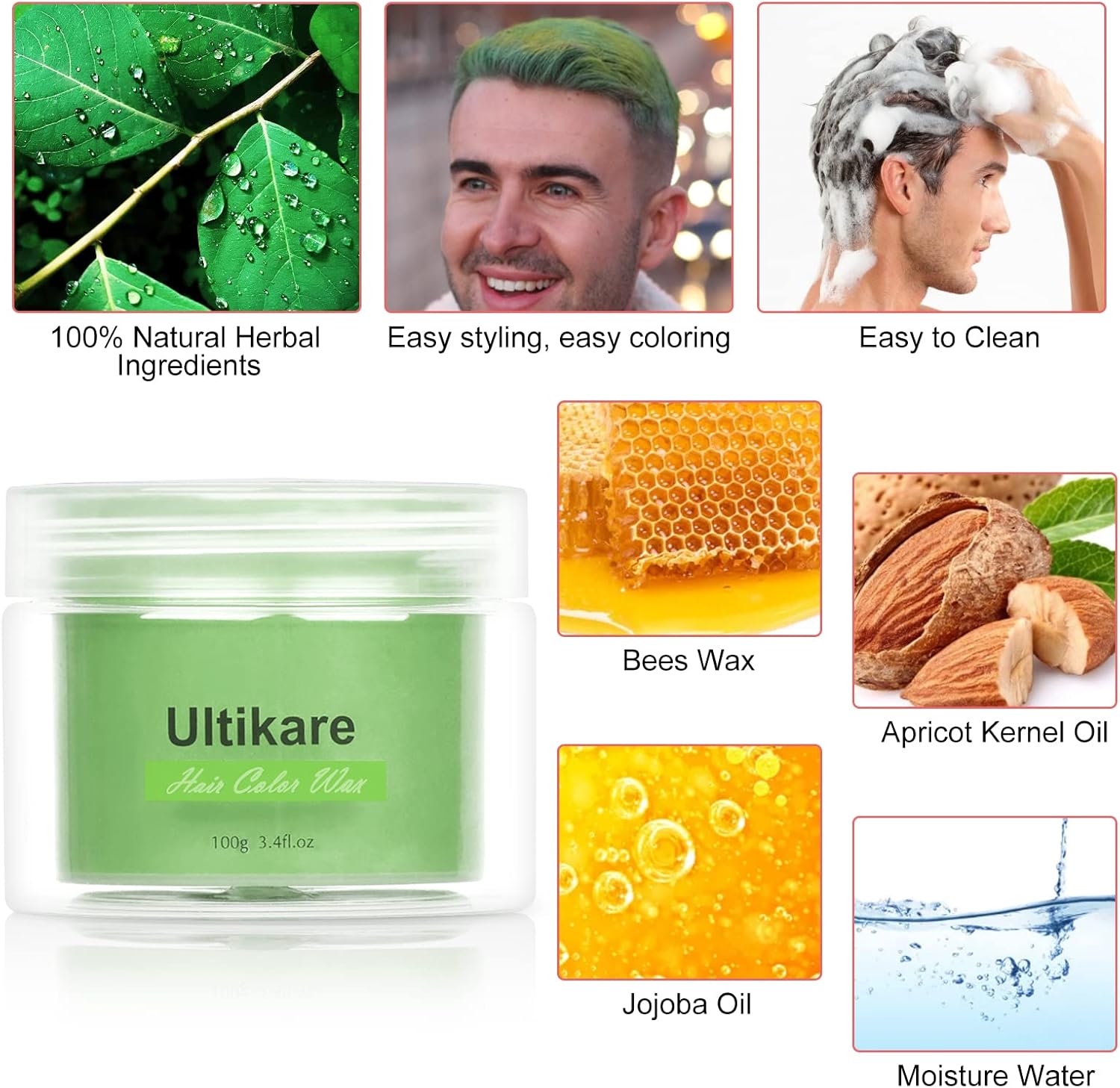 🎈🎈Veilige en Natuurlijke Ingrediënten: Deze haarkleurwax is gemaakt zonder schadelijke chemicaliën om een sterke holding power te verzekeren terwijl je haarkleur glanzend houdt. Geen hoofdhuidirritatie, natuurlijke ingrediënten en geen schade aan uw gezondheid, u kunt er zeker van zijn dat u het gebruikt.