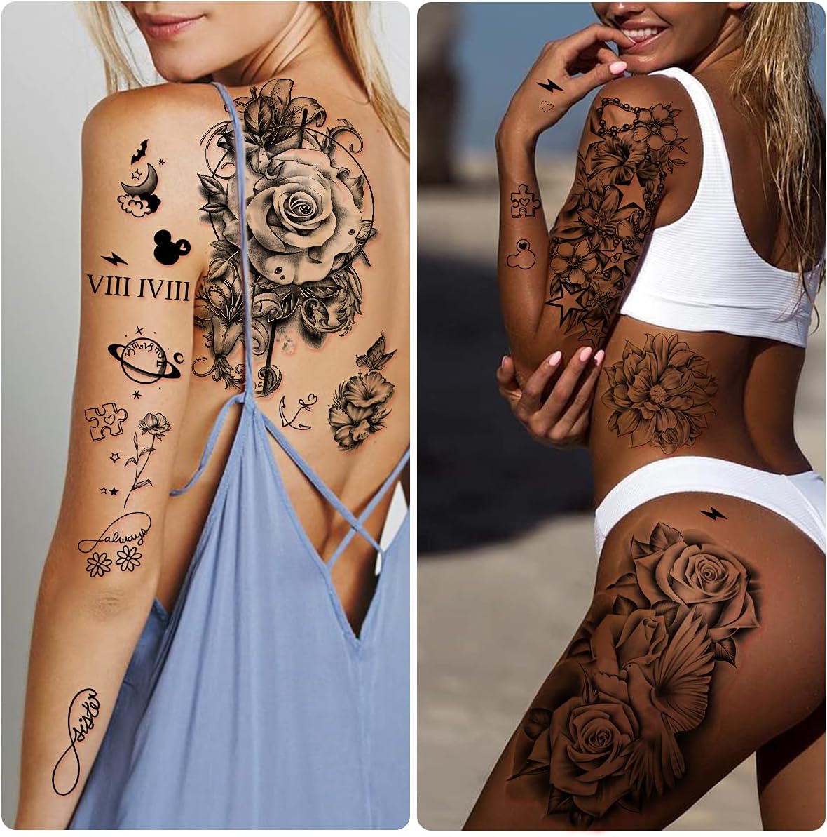 Tijdelijke tatoeages 40 vellen grote bloemen nep tattoo collectie waterdichte tijdelijke stickers voor kinderen vrouwen of meisjes geschenken en decoratie