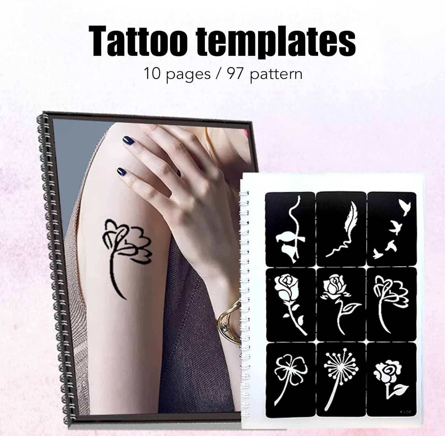 Tijdelijke Tattoo Stencils Body Art Schilderij Sjablonen Airbrush Tattoo Sjablonen 97 Patronen Waterdicht Herbruikbare Draagbare Tijdelijke Tatoeages Body Art Schilderij Sjablonen