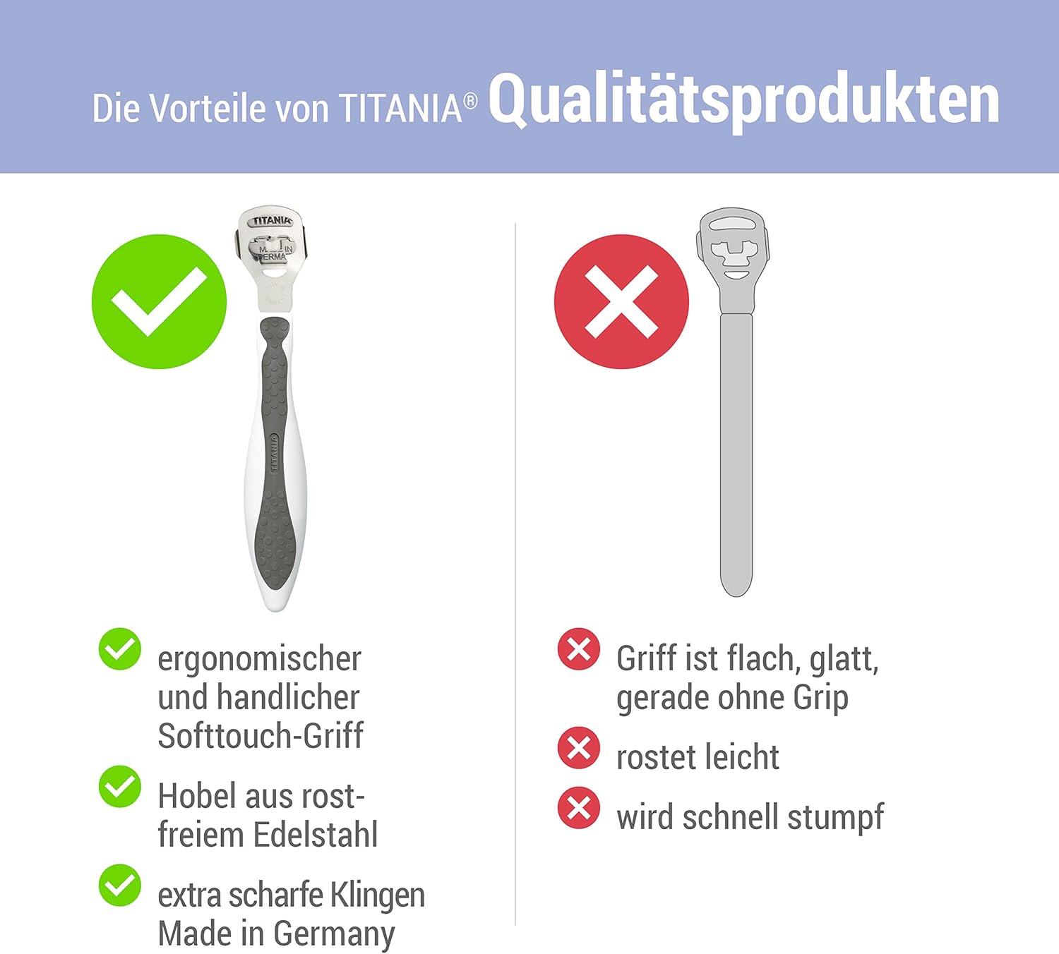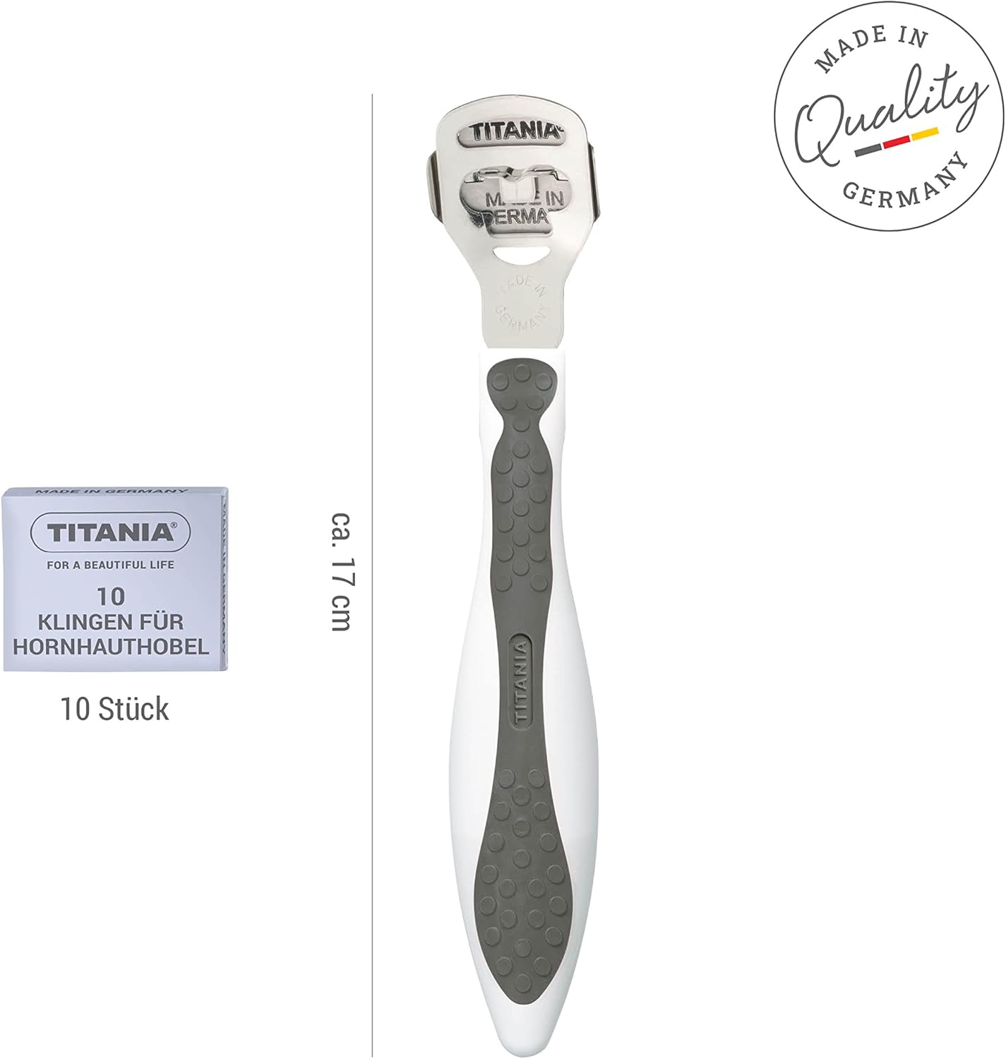 TITANIA Eeltschaaf met 10 reservemessen • eeltverwijderaar van roestvrij staal • kwaliteit eeltsnijder • Made in Germany • eeltschaaf