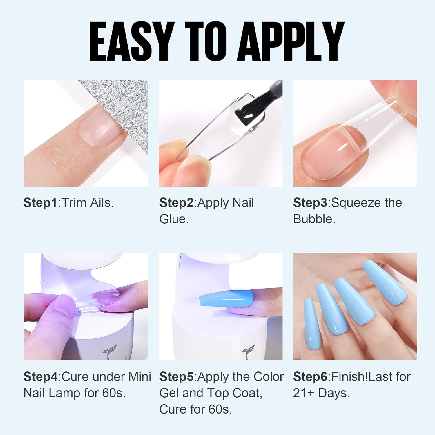 Très bon produit.Quand elles sont bien posées, les capsules tiennent jusqu’à 4 semaines malgré ménage, bricolage et jardinage. Seulement deux ongles se sont décollés car bulles d’air mais j’ai bien nettoyé la capsules, remis de la colle, catalysé et je l’ai reposée sans problème.Les ongles sont vraiment très longs, trop longs pour moi du coup je réduis la taille mais je recommande sans hésitation.