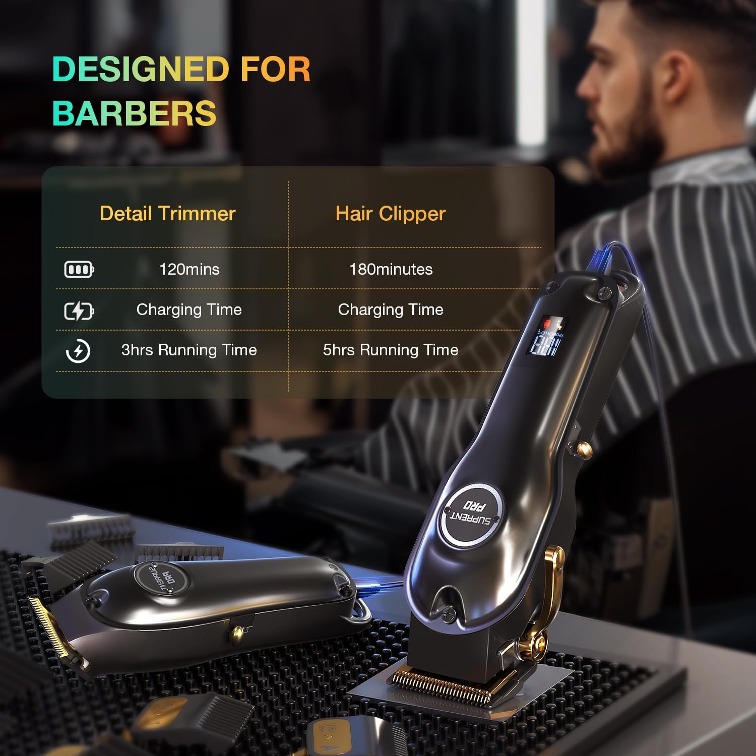SUPRENT Tondeuse, professionele tondeuse, set voor heren, Zero Gap, draadloze kapperset met led-display