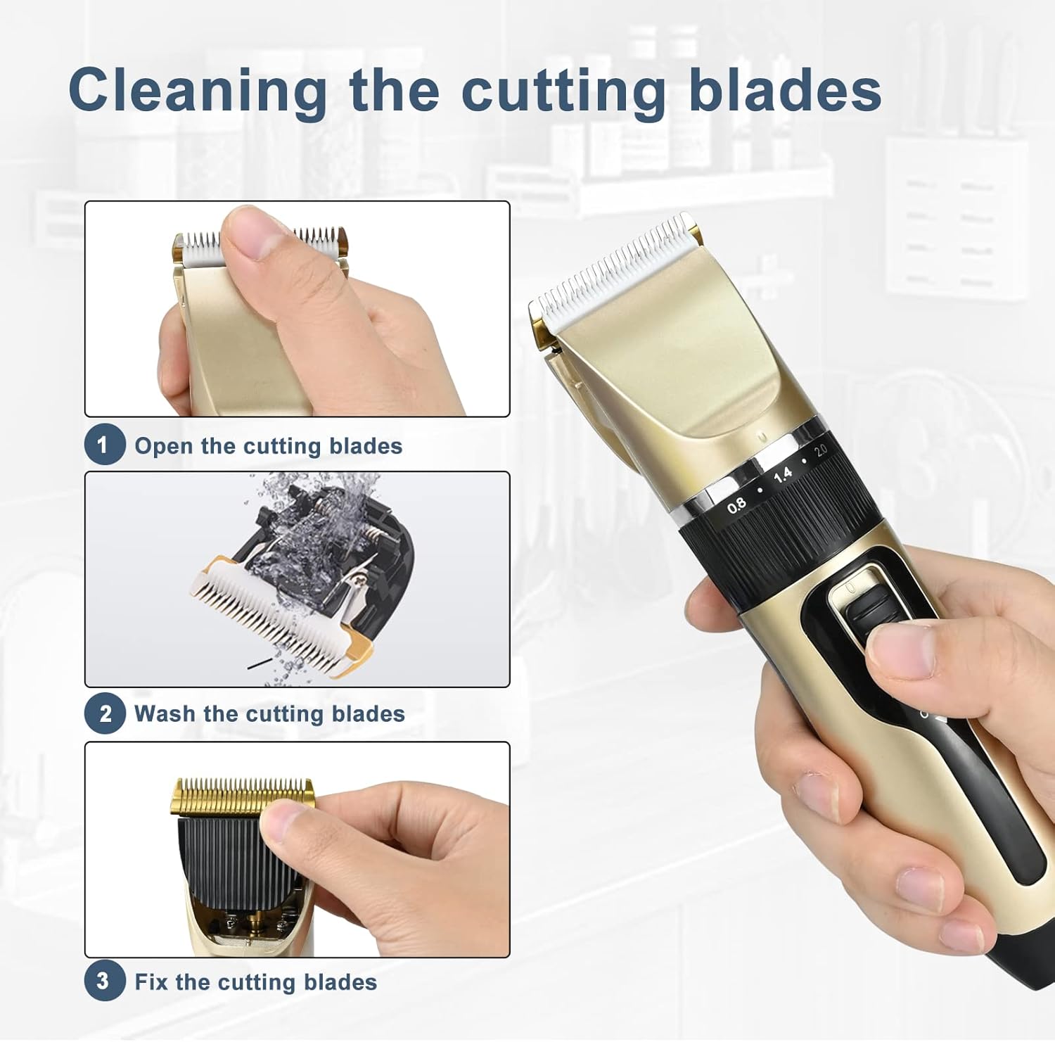 Scherp titanium keramiek: de tondeuse is gemaakt van titanium keramiek, scherp en duurzaam, niet gemakkelijk te genereren warmte en warmtegeleiding, de R-vormige ronde rand voor zacht huidcontact om onbedoelde schade aan het huidoppervlak te voorkomen. De snijkop is afneembaar, gemakkelijk te reinigen, gewoon onder stromend water afspoelen.